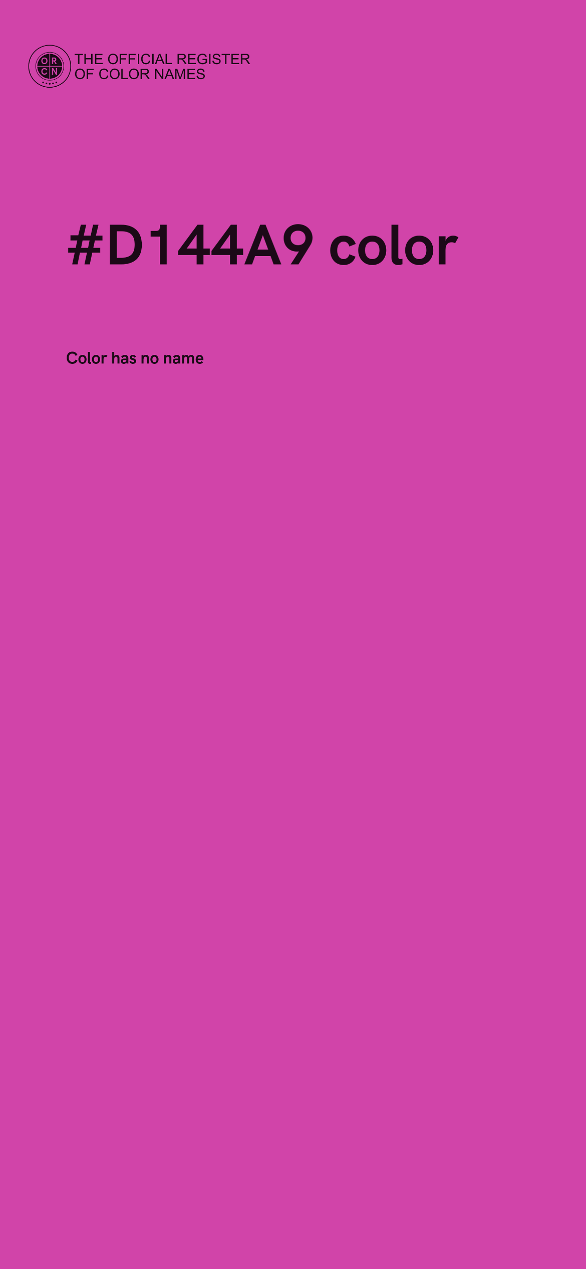 The digital color HEX #D144A9 belongs to the Rose Color Family featuring High Saturation (Saturation Family) and Light (Brightness Family).