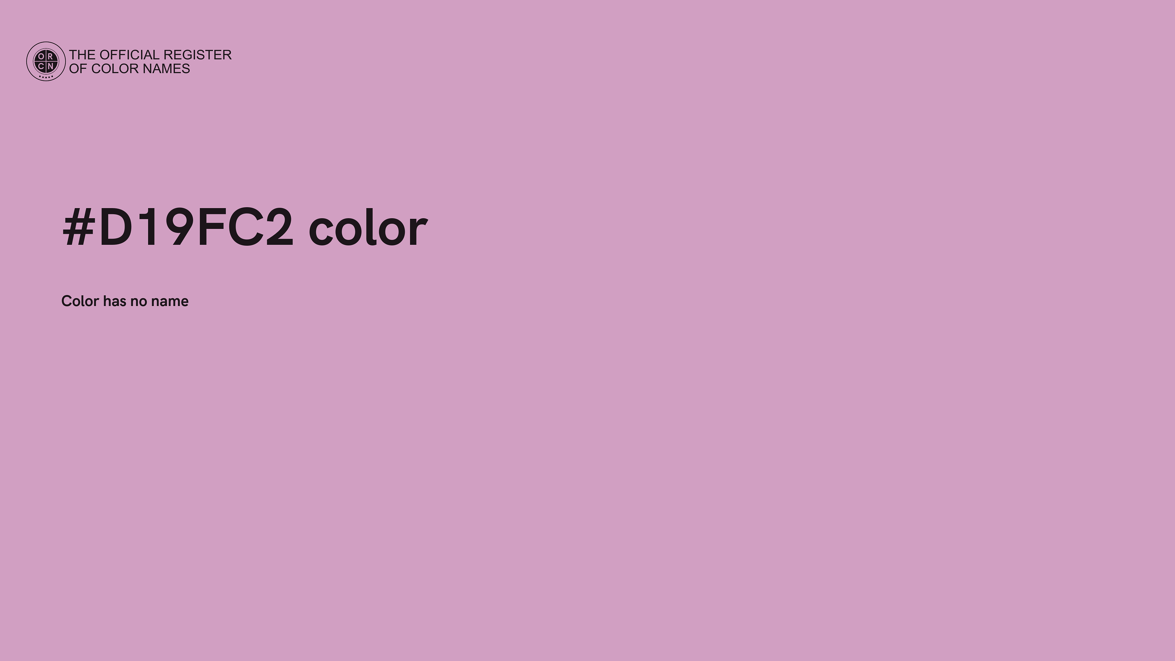 The digital color HEX #D19FC2 belongs to the Rose Color Family featuring Mild Saturation (Saturation Family) and Very Light (Brightness Family).