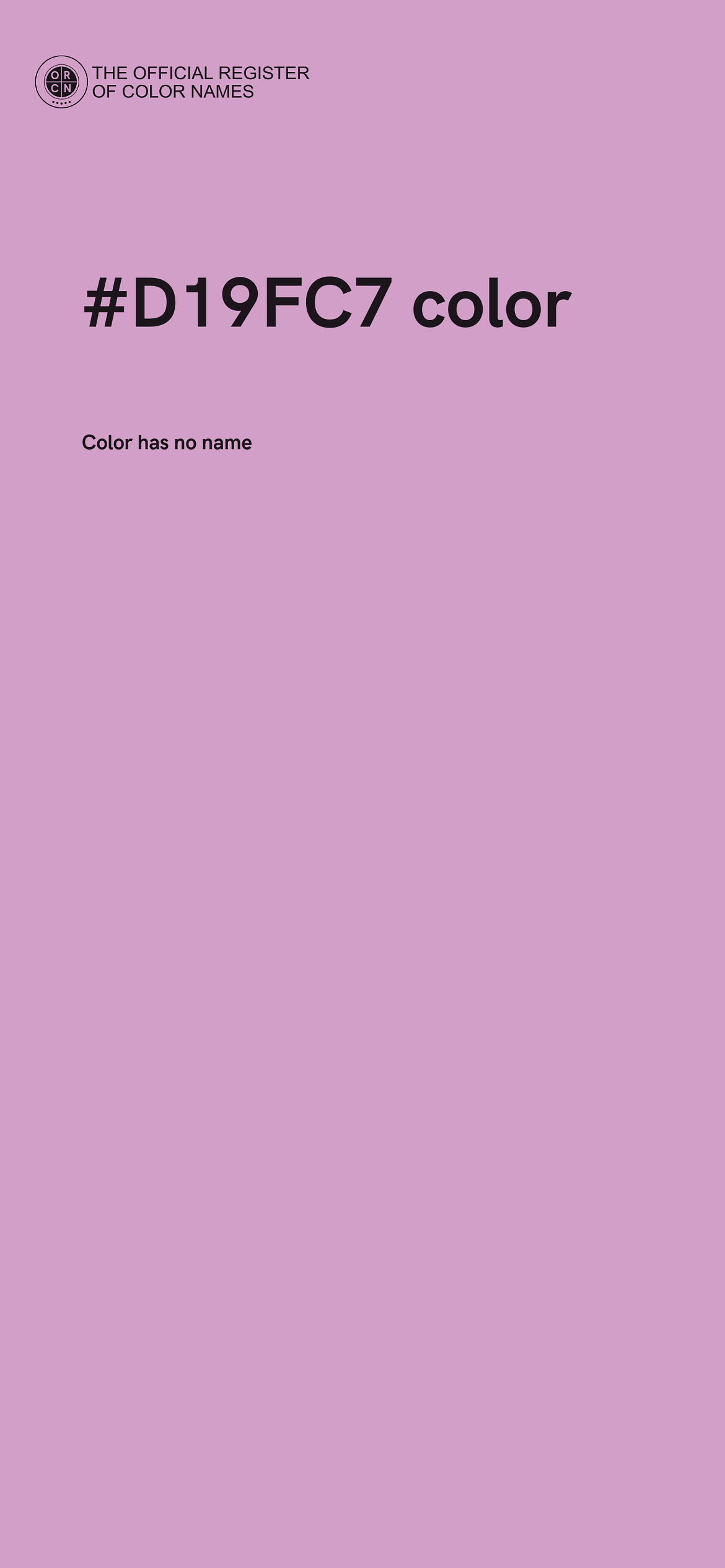 The digital color HEX #D19FC7 belongs to the Magenta Color Family featuring Mild Saturation (Saturation Family) and Very Light (Brightness Family).
