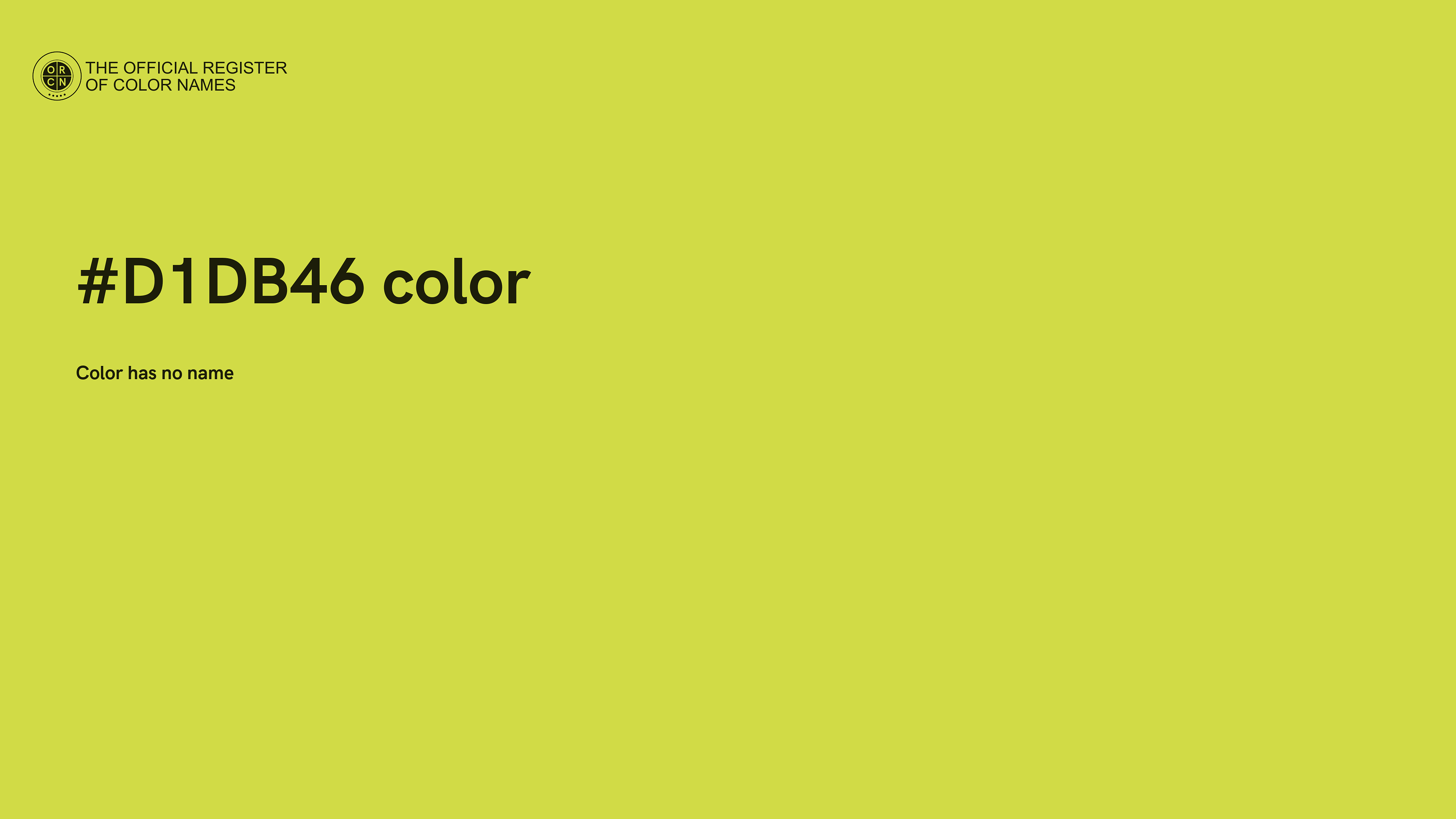 The digital color HEX #D1DB46 belongs to the Yellow Color Family featuring High Saturation (Saturation Family) and Light (Brightness Family).