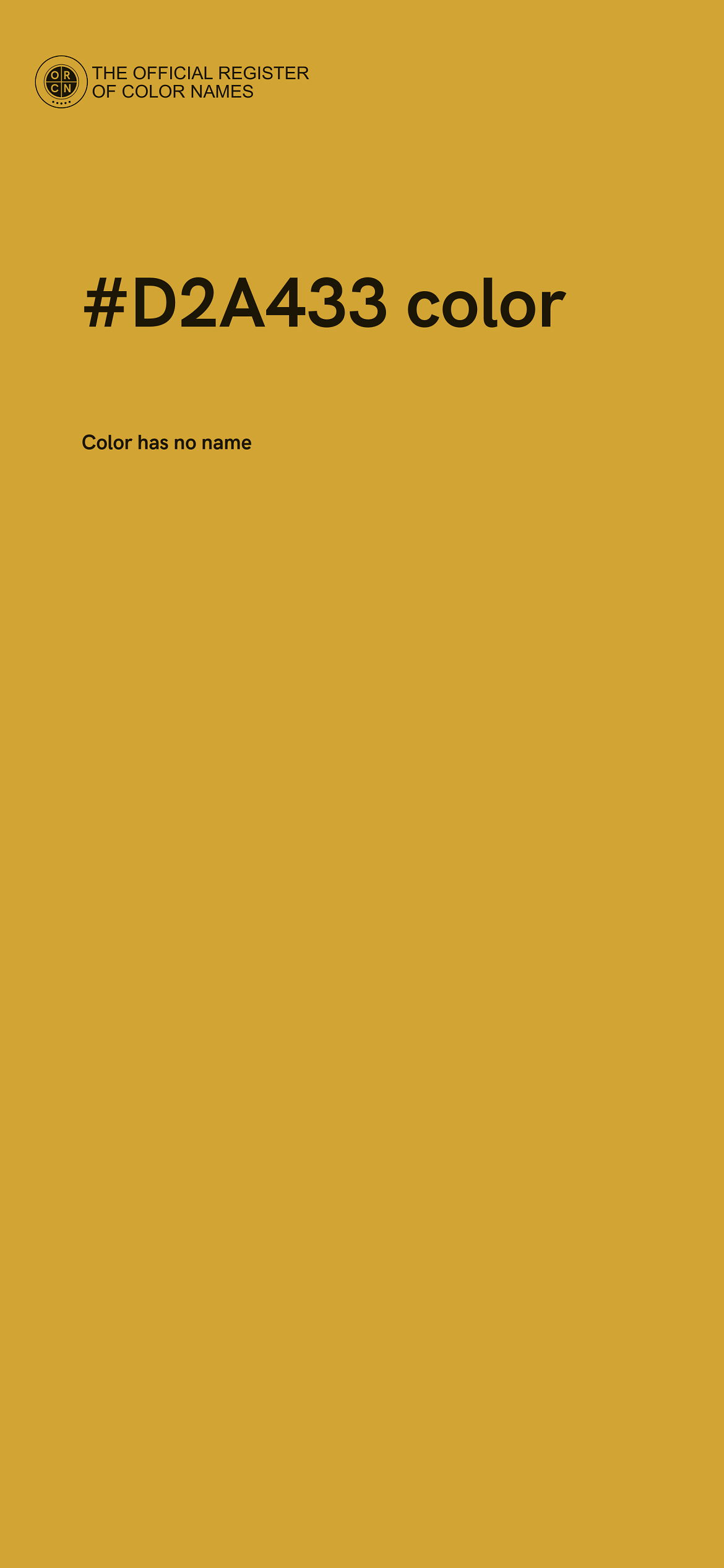 The digital color HEX #D2A433 belongs to the Orange Color Family featuring High Saturation (Saturation Family) and Light (Brightness Family).