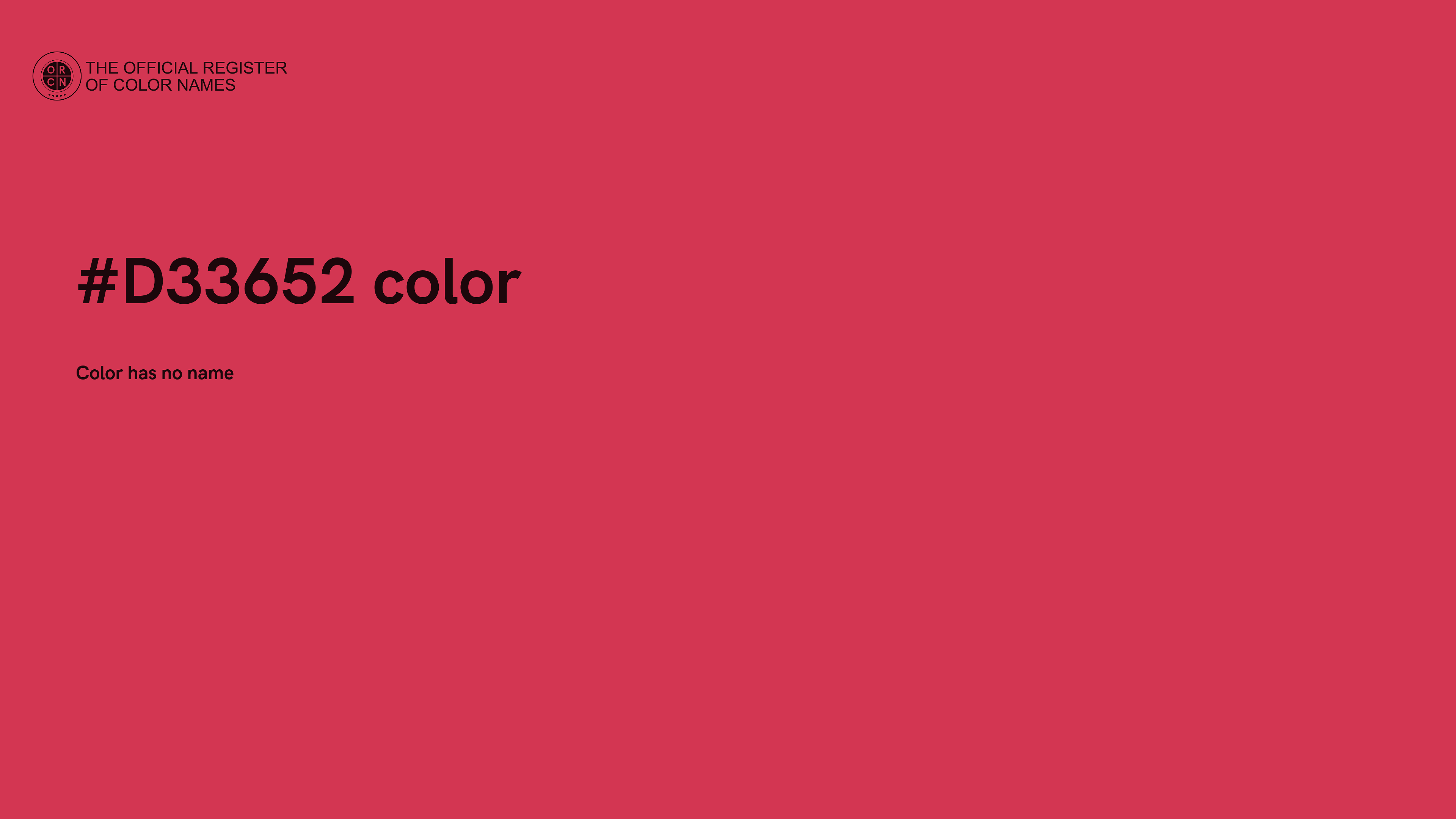 The digital color HEX #D33652 belongs to the Red Color Family featuring High Saturation (Saturation Family) and Light (Brightness Family).