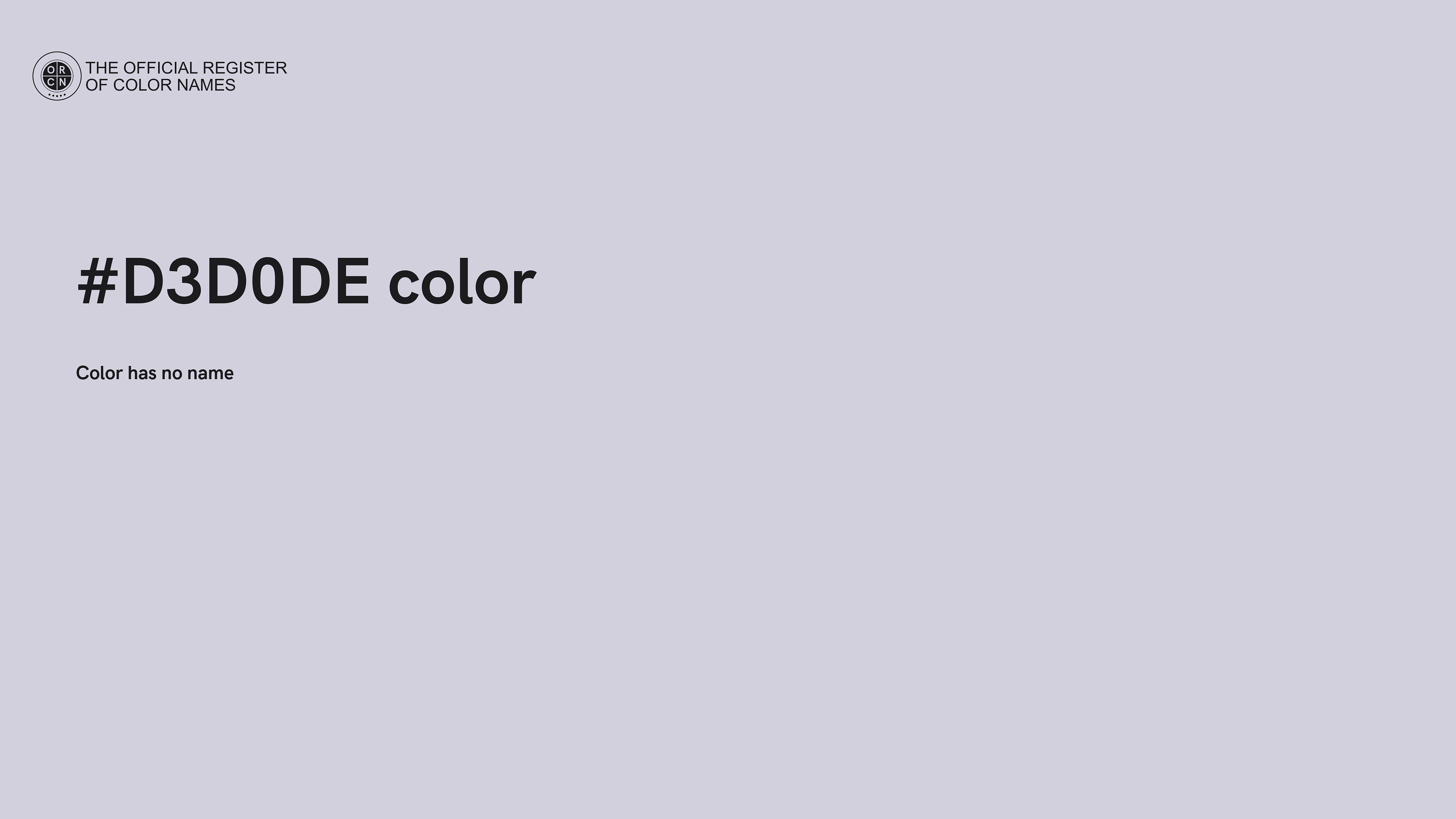 The digital color HEX #D3D0DE belongs to the Blue Color Family featuring Low Saturation (Saturation Family) and Very Light (Brightness Family).