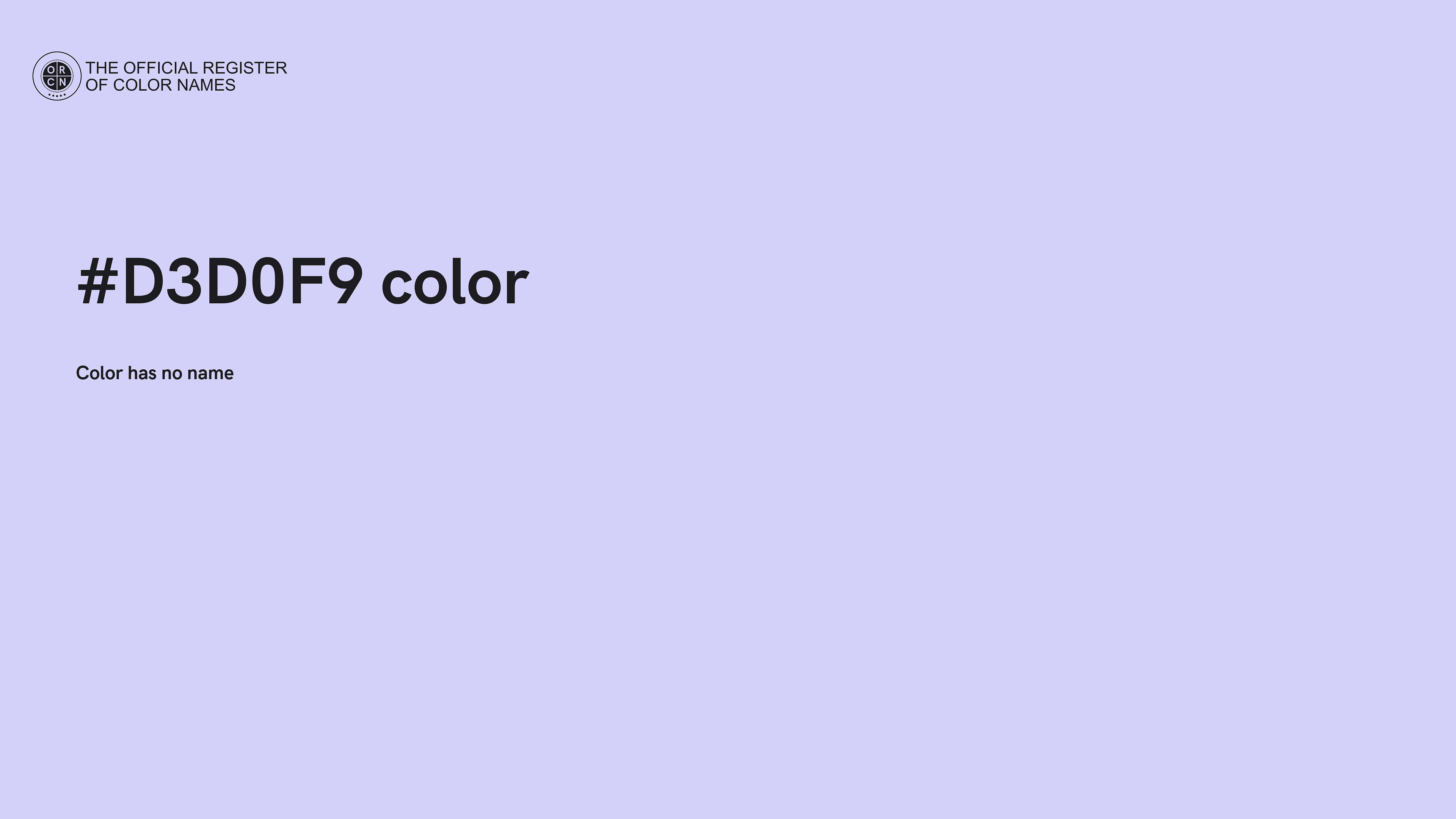 The digital color HEX #D3D0F9 belongs to the Blue Color Family featuring High Saturation (Saturation Family) and Luminous (Brightness Family).