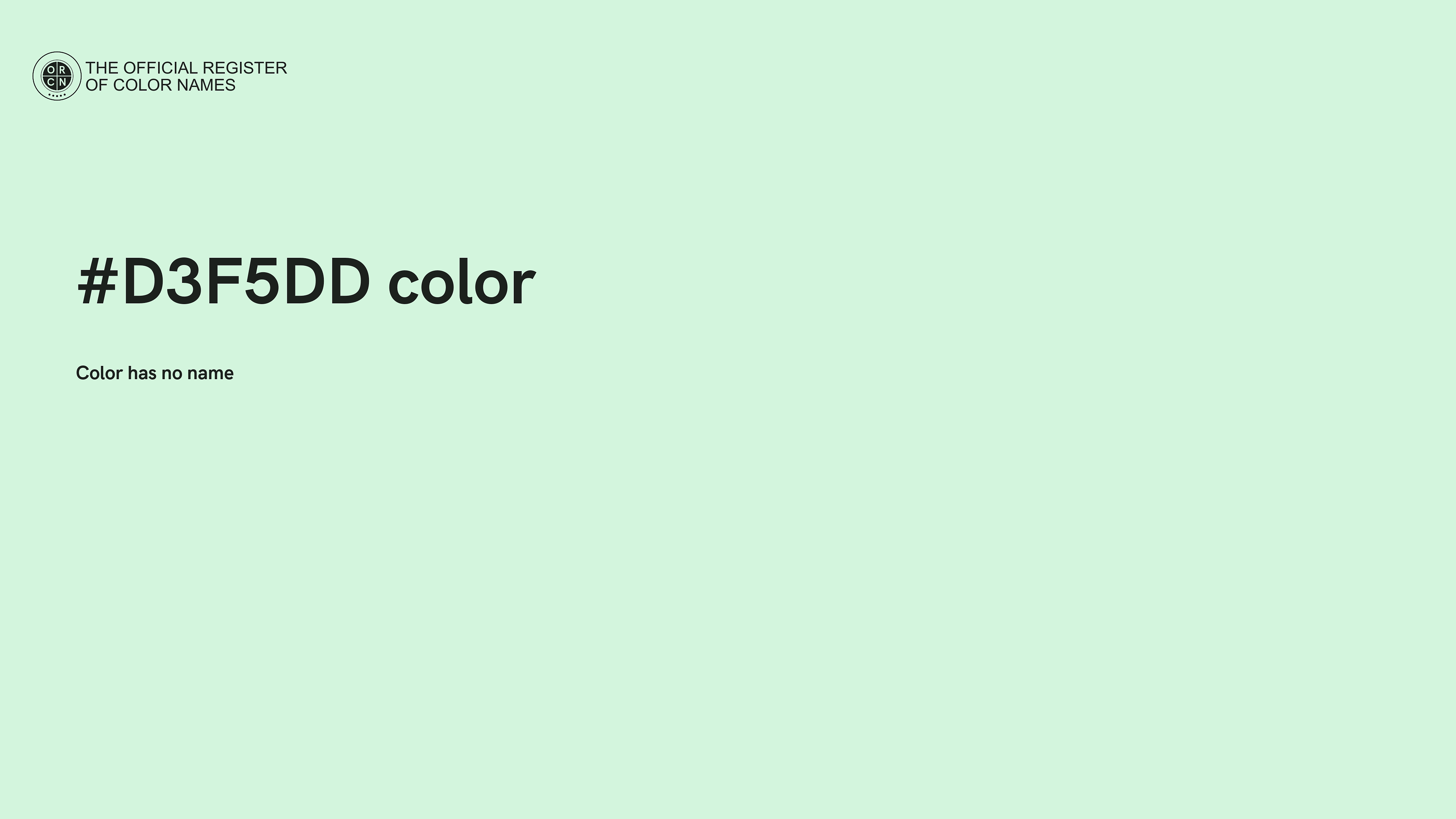 The digital color HEX #D3F5DD belongs to the Spring Green Color Family featuring High Saturation (Saturation Family) and Luminous (Brightness Family).