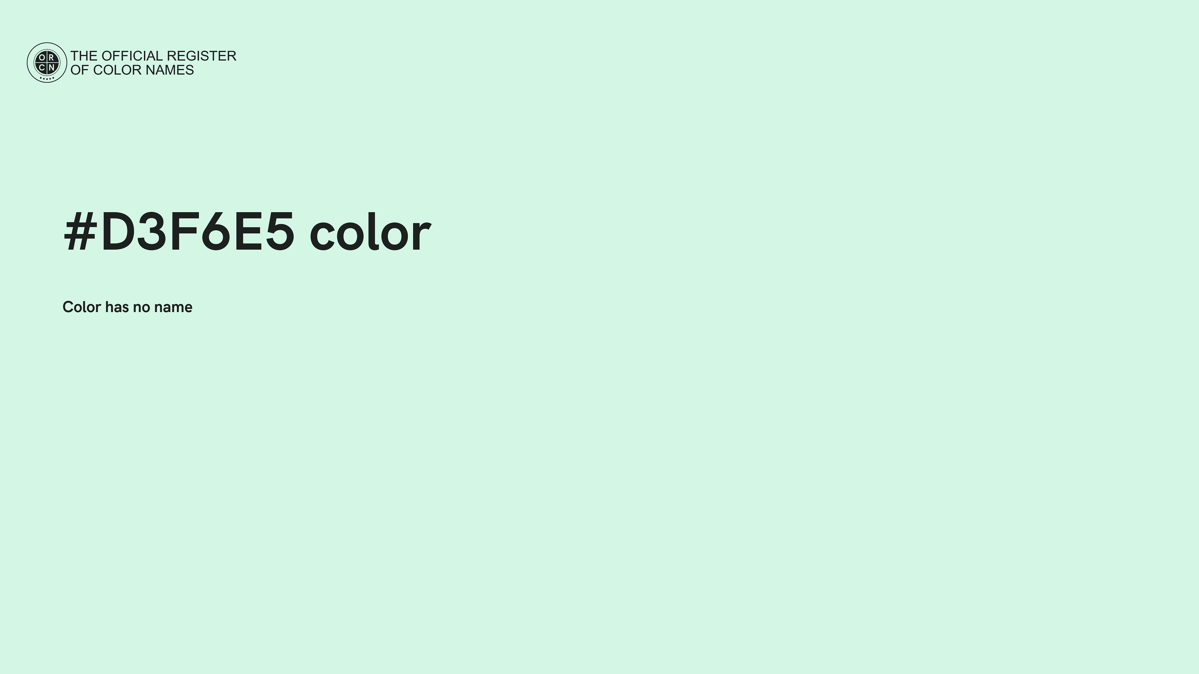 For printing in non digital world, #D3F6E5 is represented in CMYK as 14 Cyan, 0 Magenta, 7 Yellow, and 4 Black (Key) (C:14 M:0 Y:7 K:4).