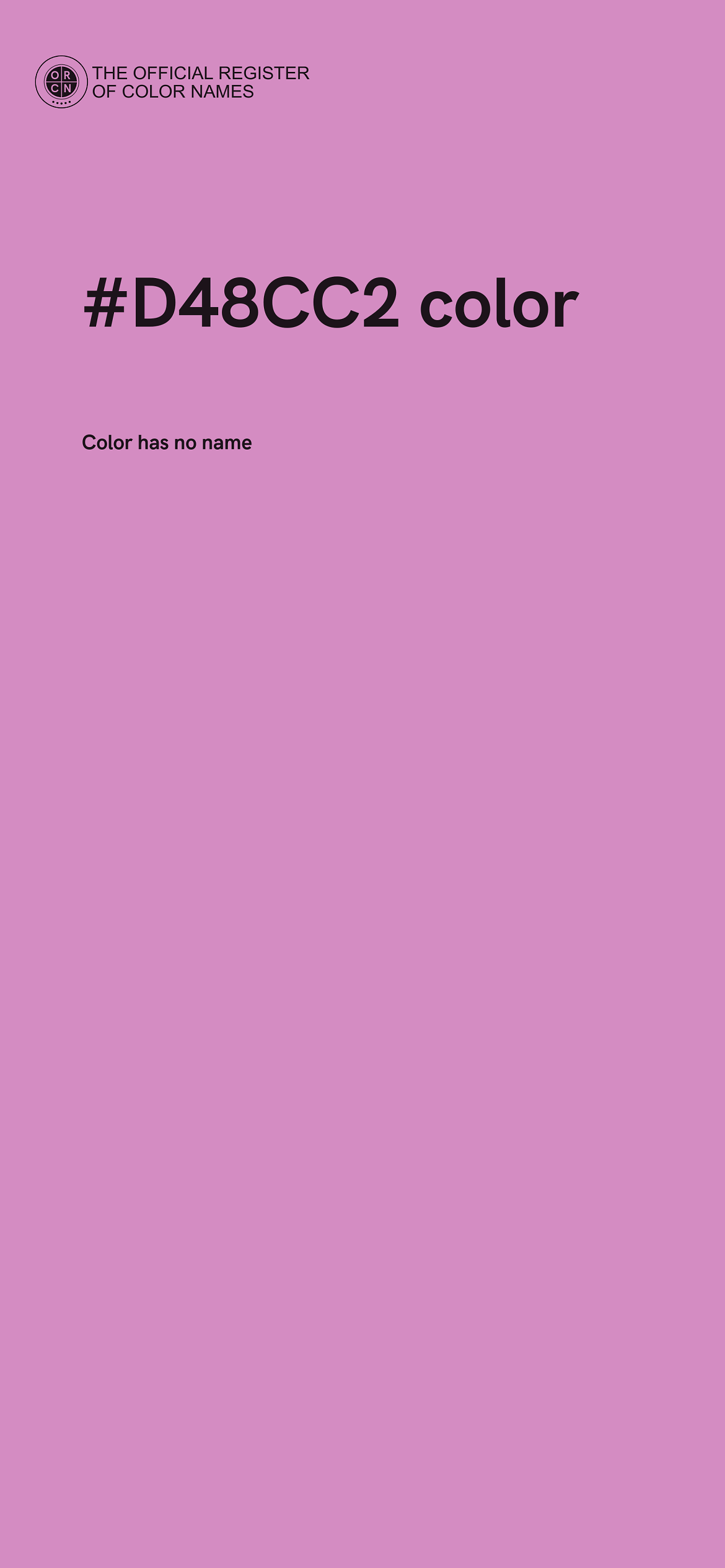The digital color HEX #D48CC2 belongs to the Rose Color Family featuring Moderate Saturation (Saturation Family) and Very Light (Brightness Family).