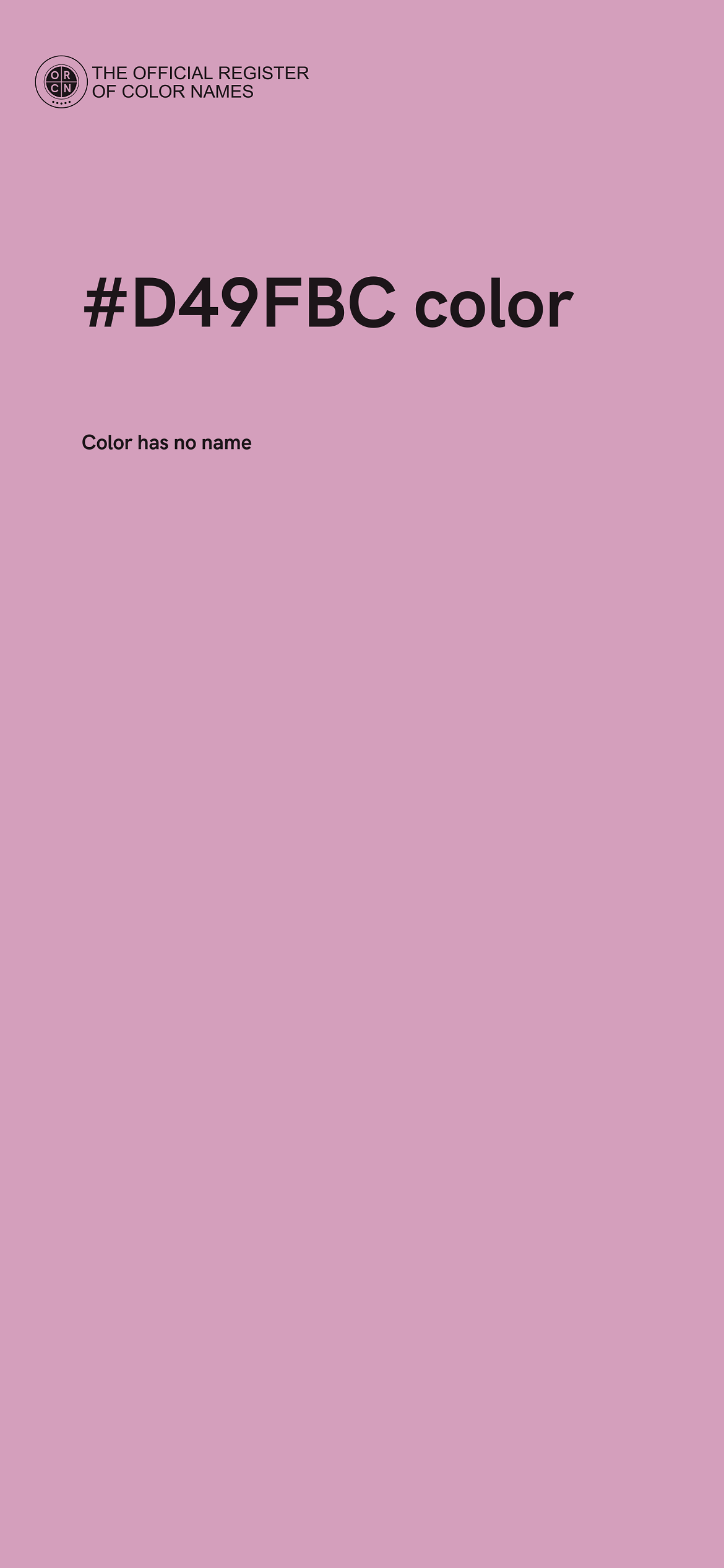 The digital color HEX #D49FBC belongs to the Rose Color Family featuring Mild Saturation (Saturation Family) and Very Light (Brightness Family).