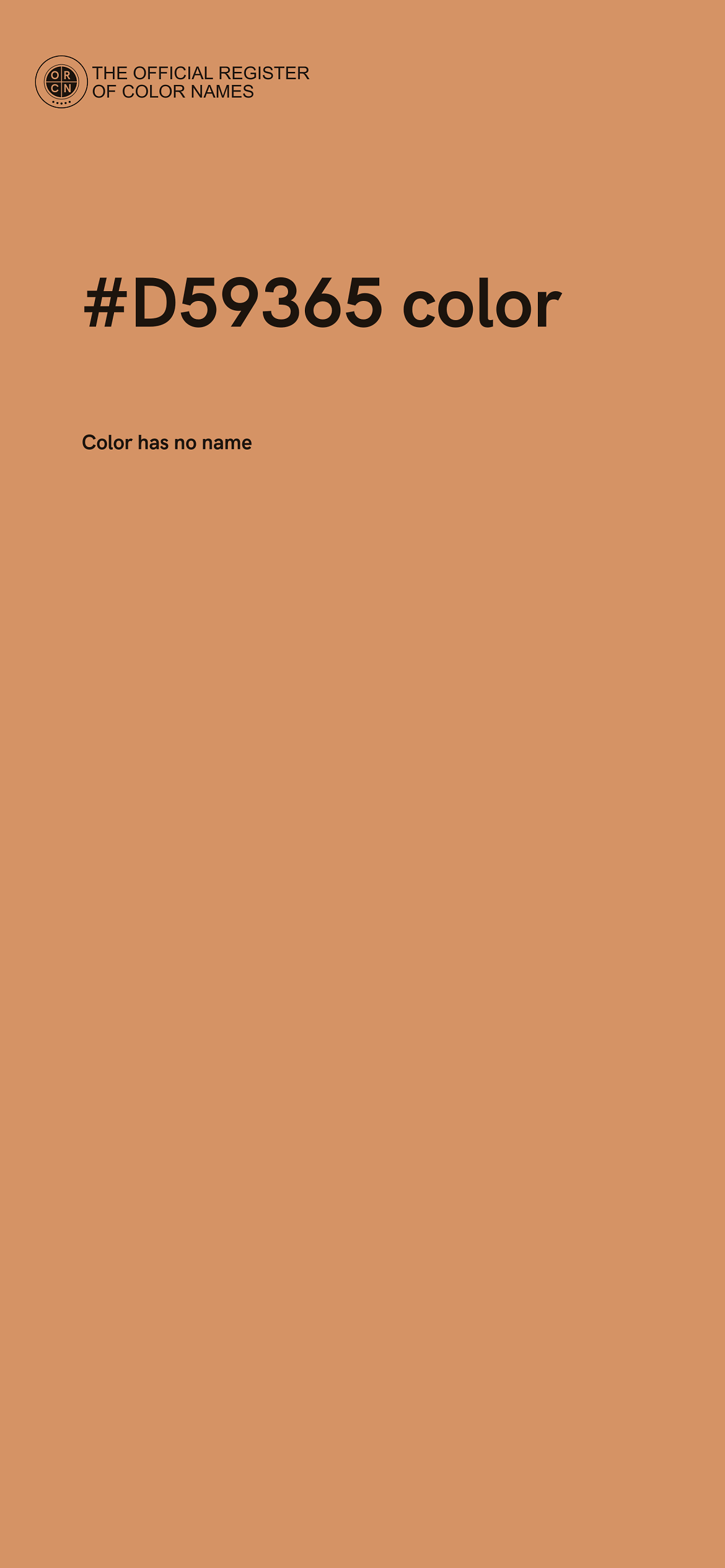 The digital color HEX #D59365 belongs to the Orange Color Family featuring Moderate Saturation (Saturation Family) and Very Light (Brightness Family).