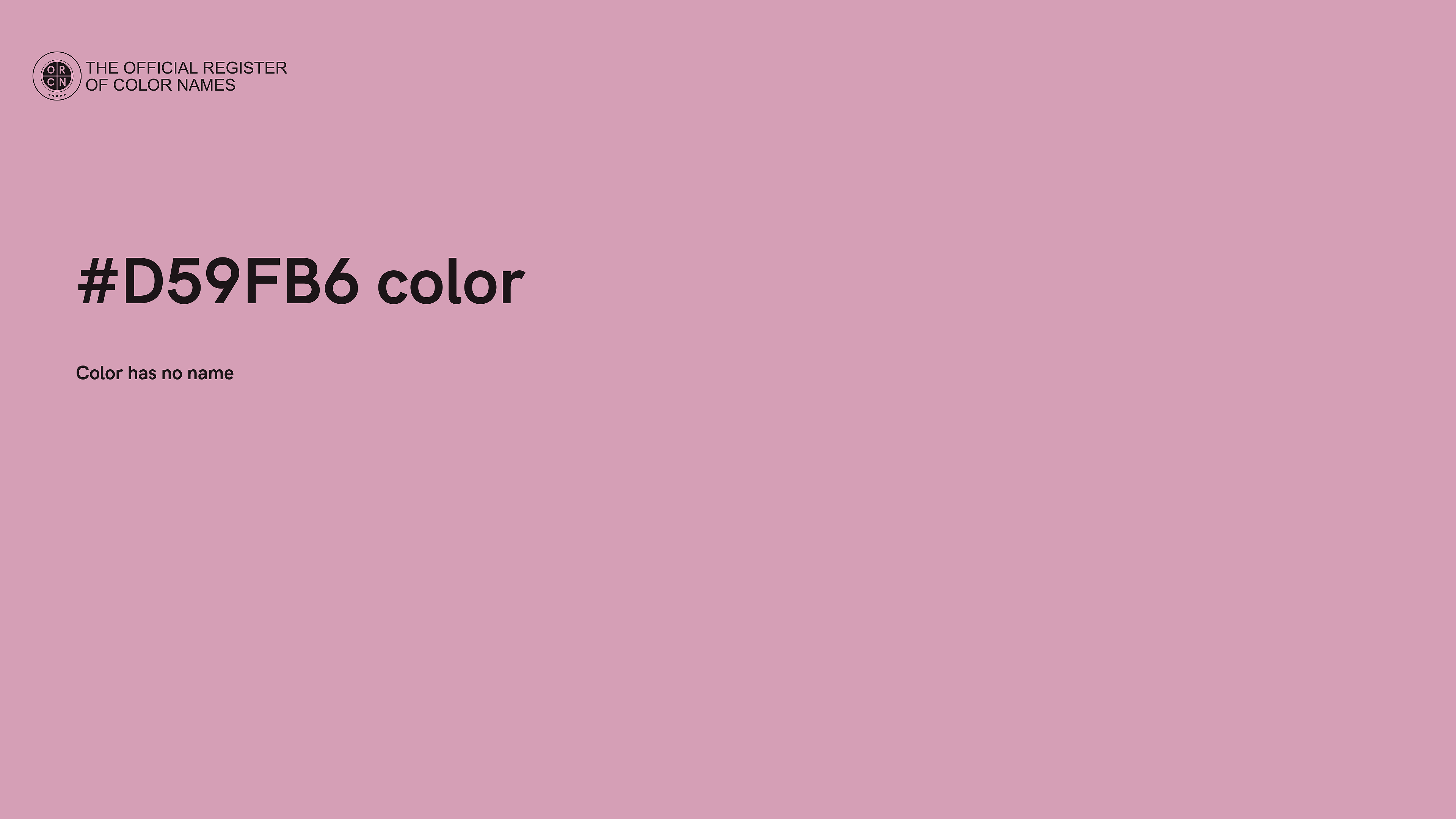 The digital color HEX #D59FB6 belongs to the Rose Color Family featuring Mild Saturation (Saturation Family) and Very Light (Brightness Family).