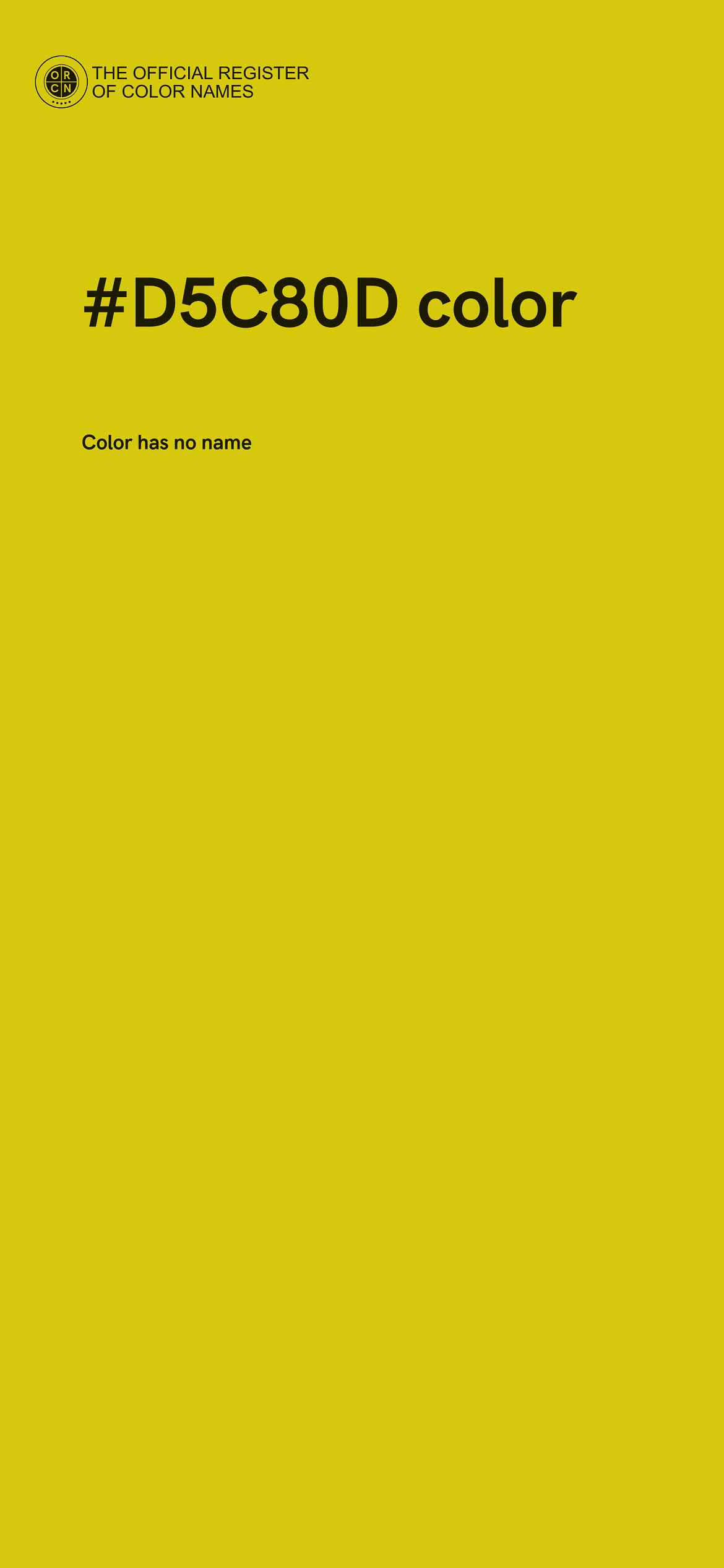 For printing in non digital world, #D5C80D is represented in CMYK as 0 Cyan, 5 Magenta, 78 Yellow, and 16 Black (Key) (C:0 M:5 Y:78 K:16).