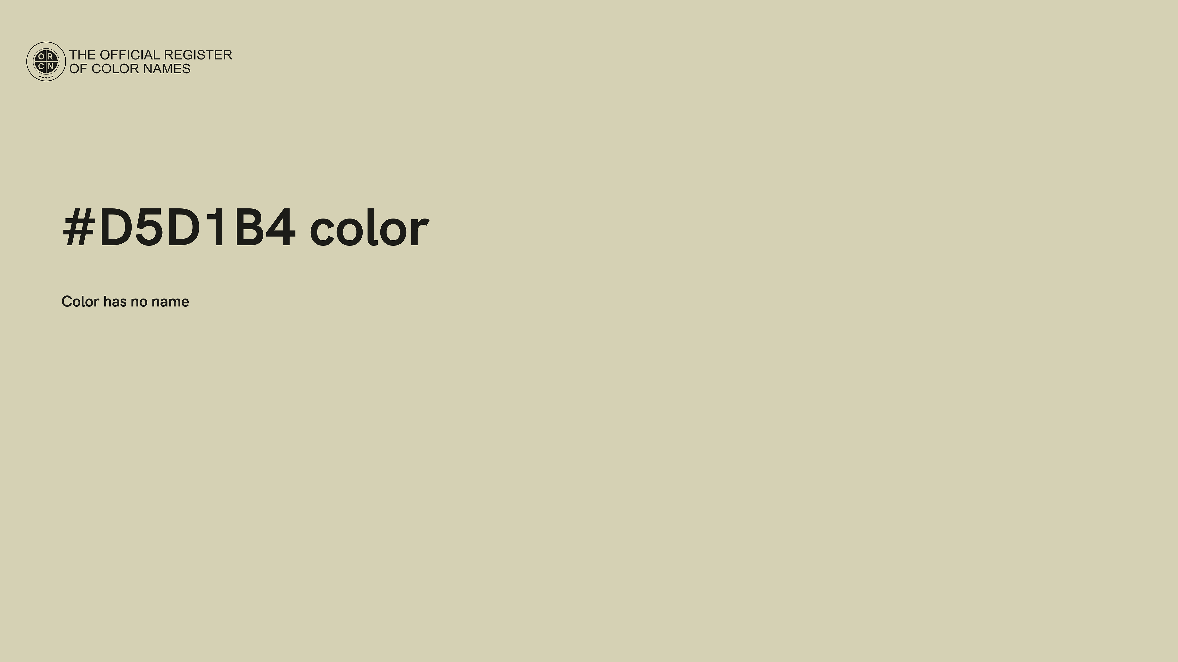 The digital color HEX #D5D1B4 belongs to the Yellow Color Family featuring Mild Saturation (Saturation Family) and Very Light (Brightness Family).