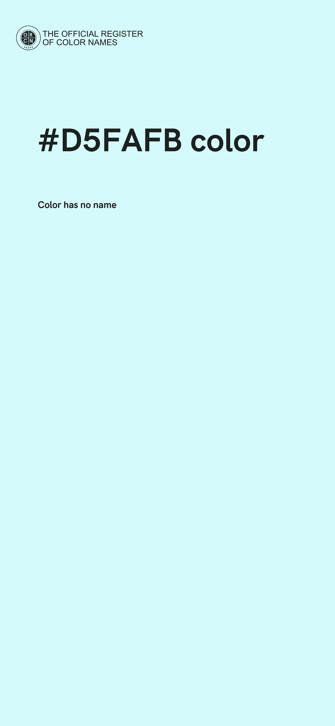 The digital color HEX #D5FAFB belongs to the Cyan Color Family featuring High Saturation (Saturation Family) and Luminous (Brightness Family).