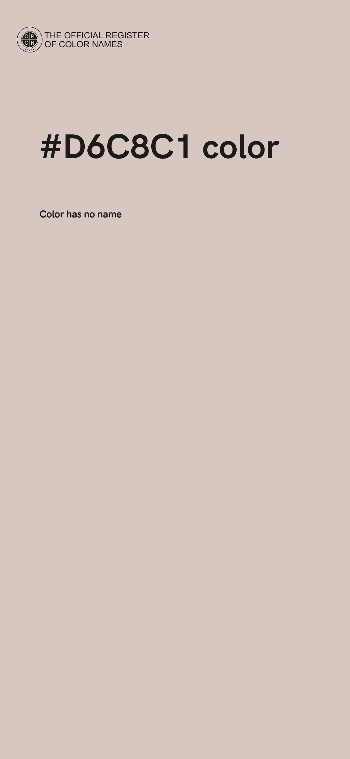 The digital color HEX #D6C8C1 belongs to the Orange Color Family featuring Low Saturation (Saturation Family) and Very Light (Brightness Family).