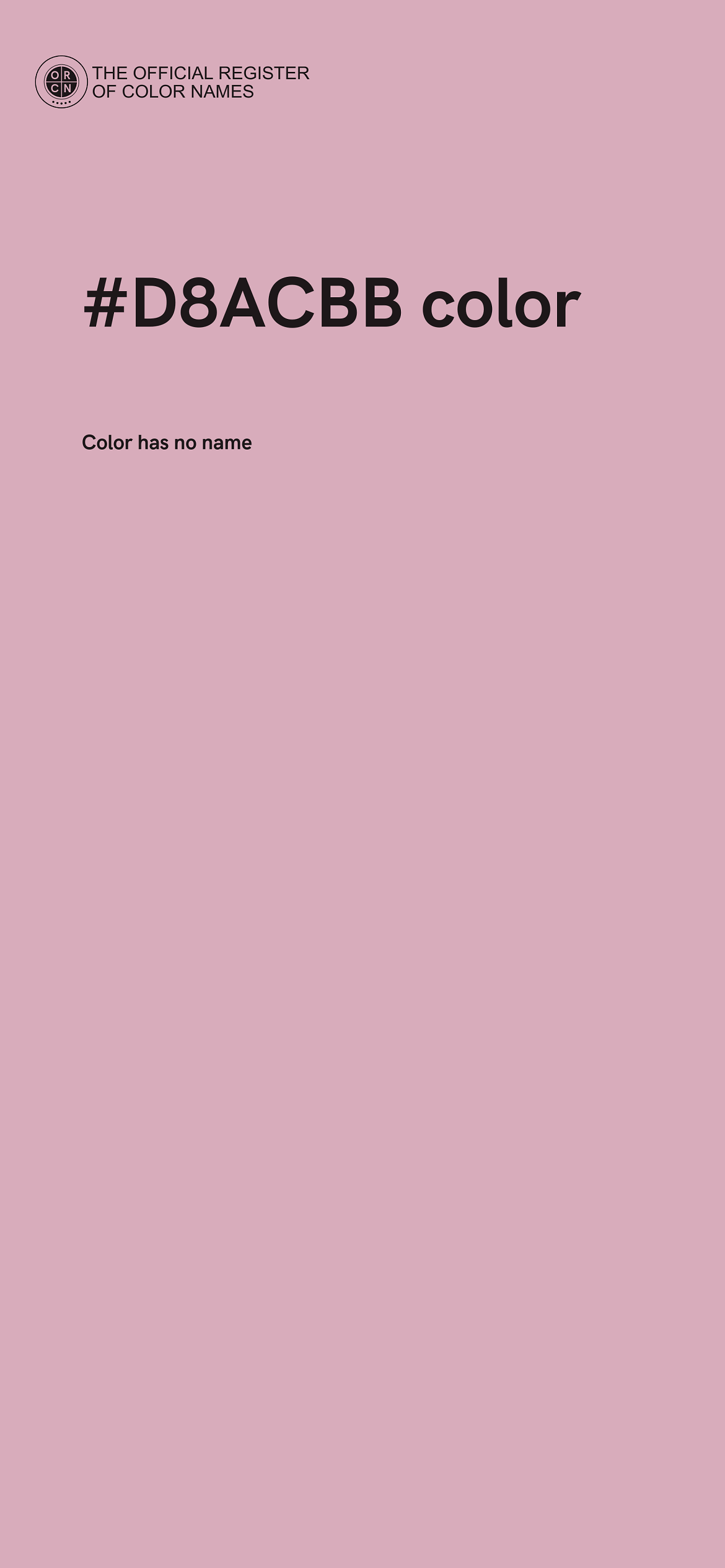 The digital color HEX #D8ACBB belongs to the Rose Color Family featuring Mild Saturation (Saturation Family) and Very Light (Brightness Family).