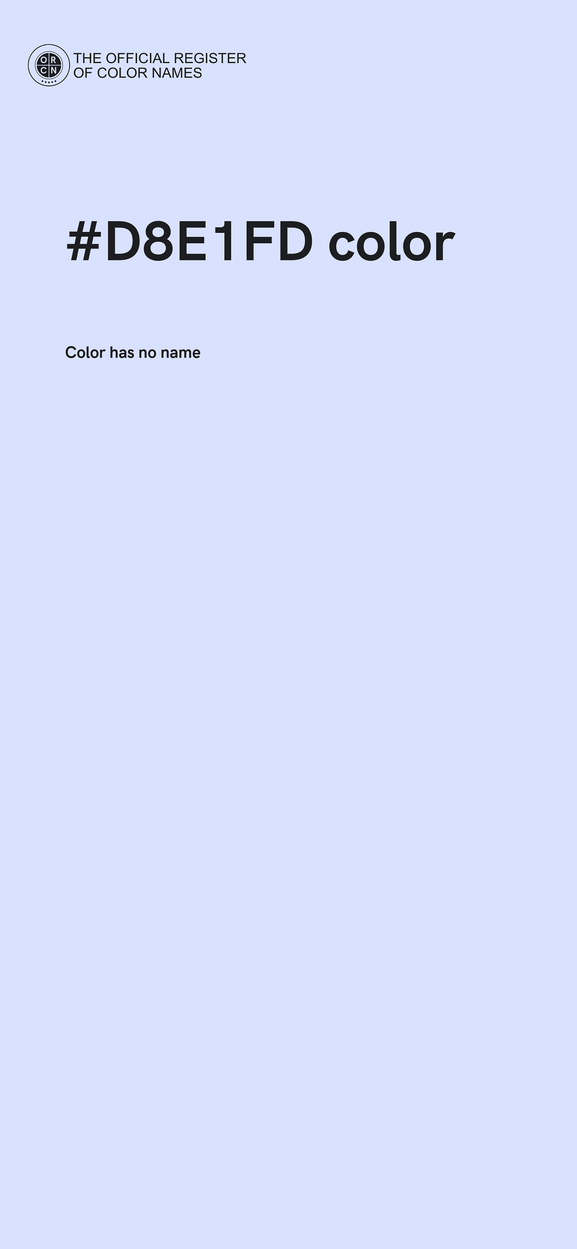 The digital color HEX #D8E1FD belongs to the Blue Color Family featuring Full Saturation (Saturation Family) and Luminous (Brightness Family).