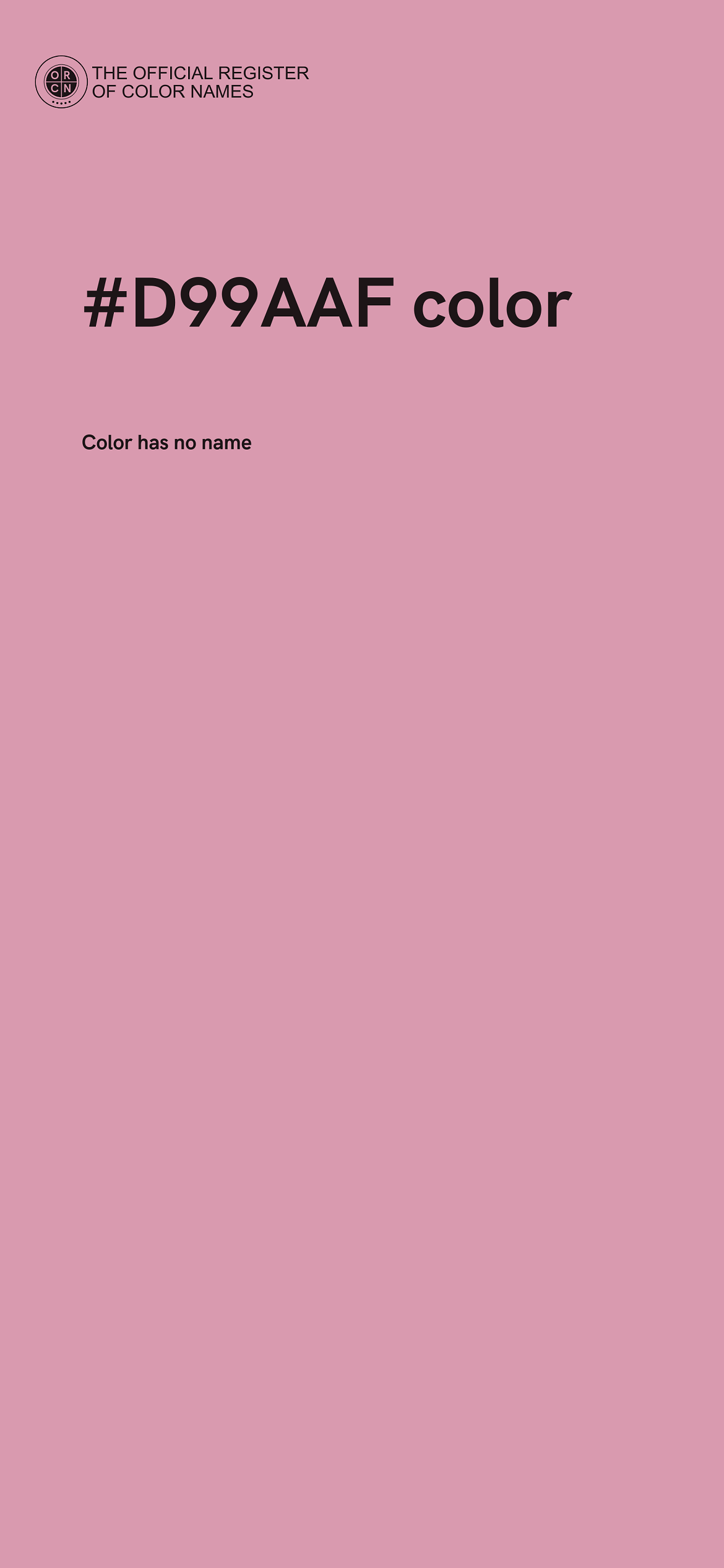 The digital color HEX #D99AAF belongs to the Rose Color Family featuring Moderate Saturation (Saturation Family) and Very Light (Brightness Family).
