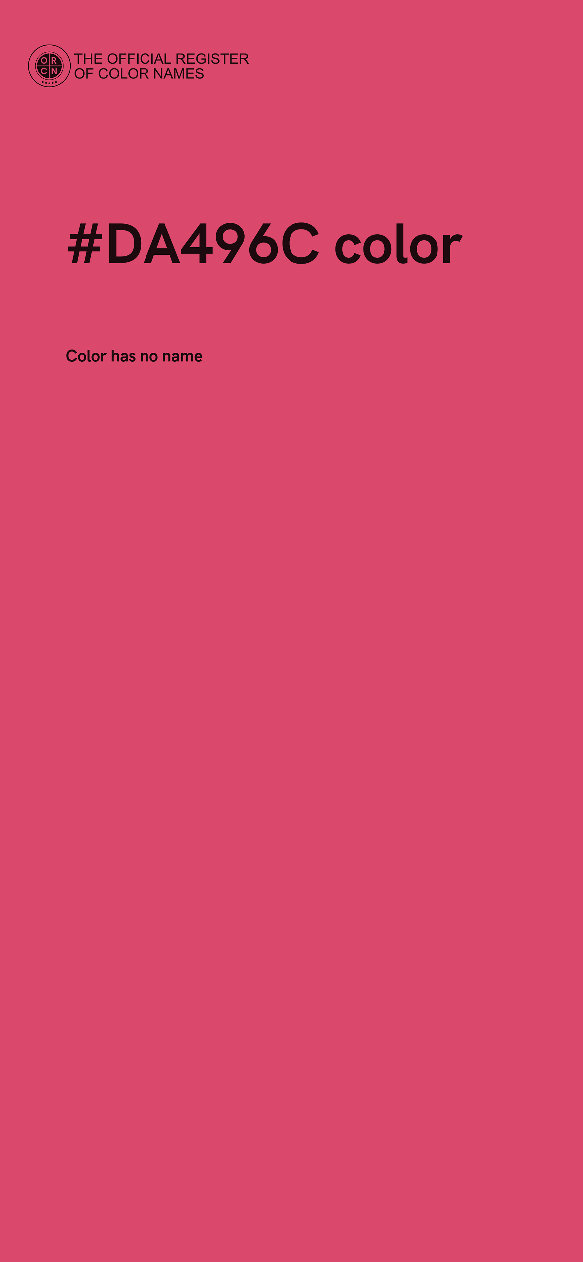 For printing in non digital world, #DA496C is represented in CMYK as 0 Cyan, 57 Magenta, 43 Yellow, and 15 Black (Key) (C:0 M:57 Y:43 K:15).