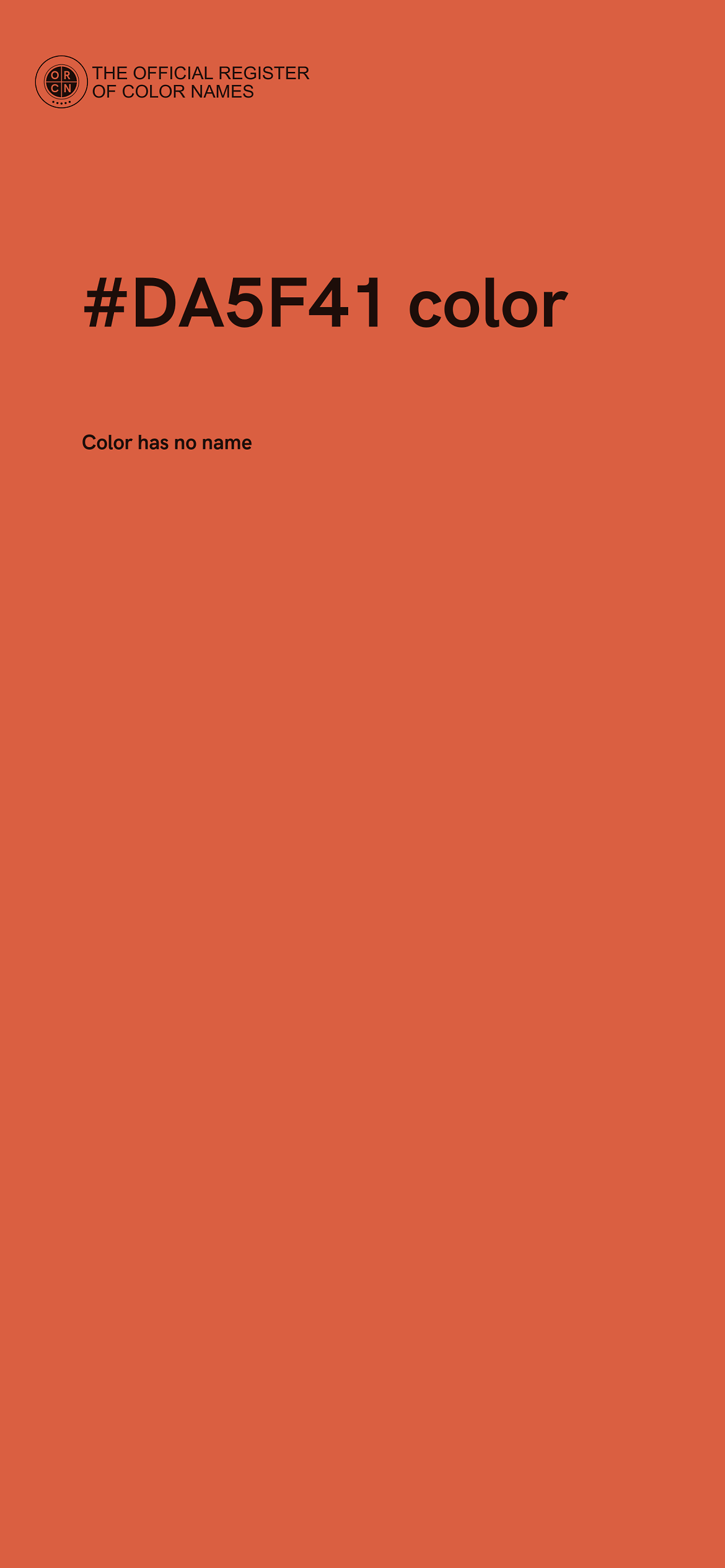 The digital color HEX #DA5F41 belongs to the Red Color Family featuring High Saturation (Saturation Family) and Light (Brightness Family).