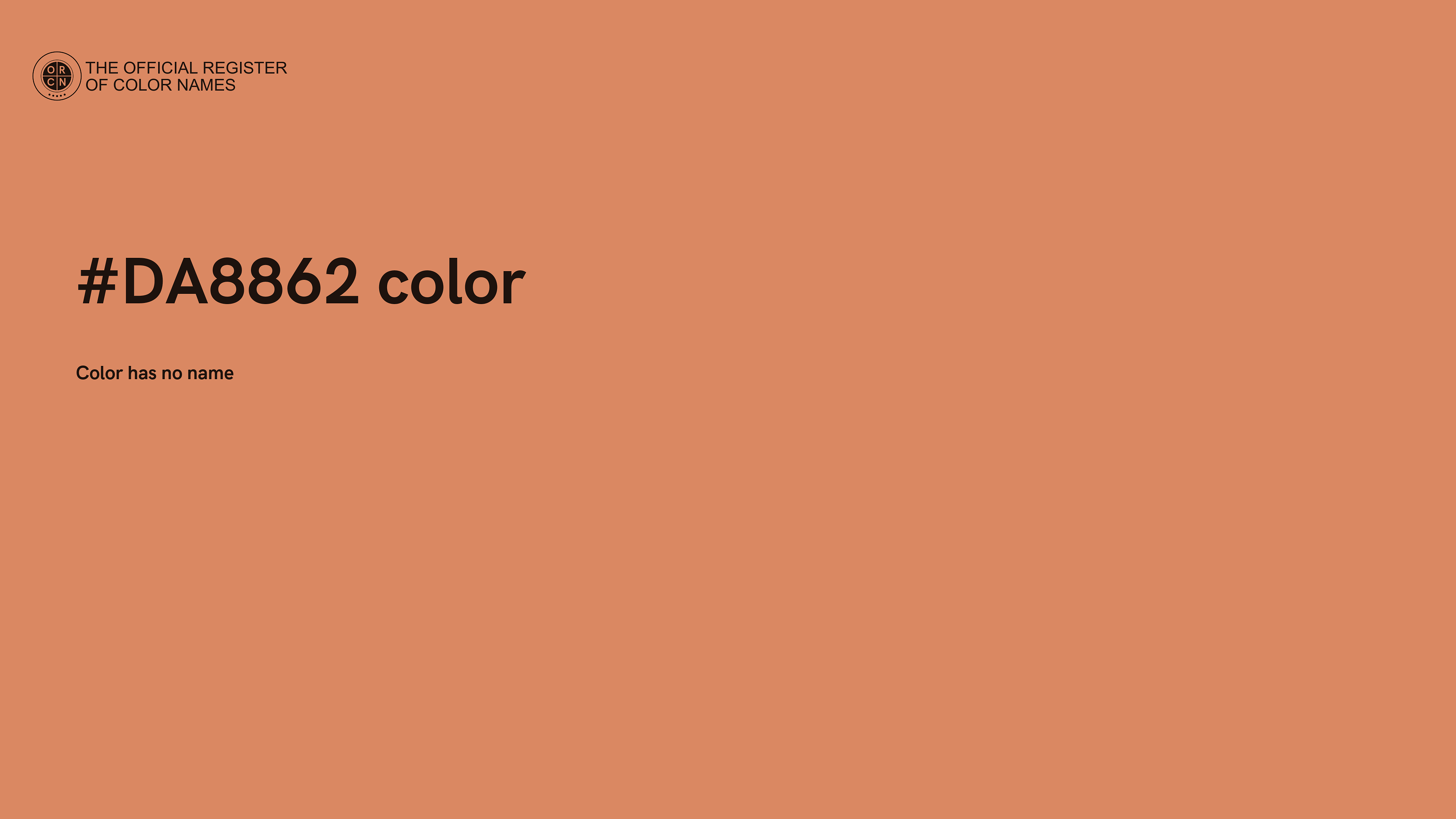 The digital color HEX #DA8862 belongs to the Orange Color Family featuring High Saturation (Saturation Family) and Very Light (Brightness Family).