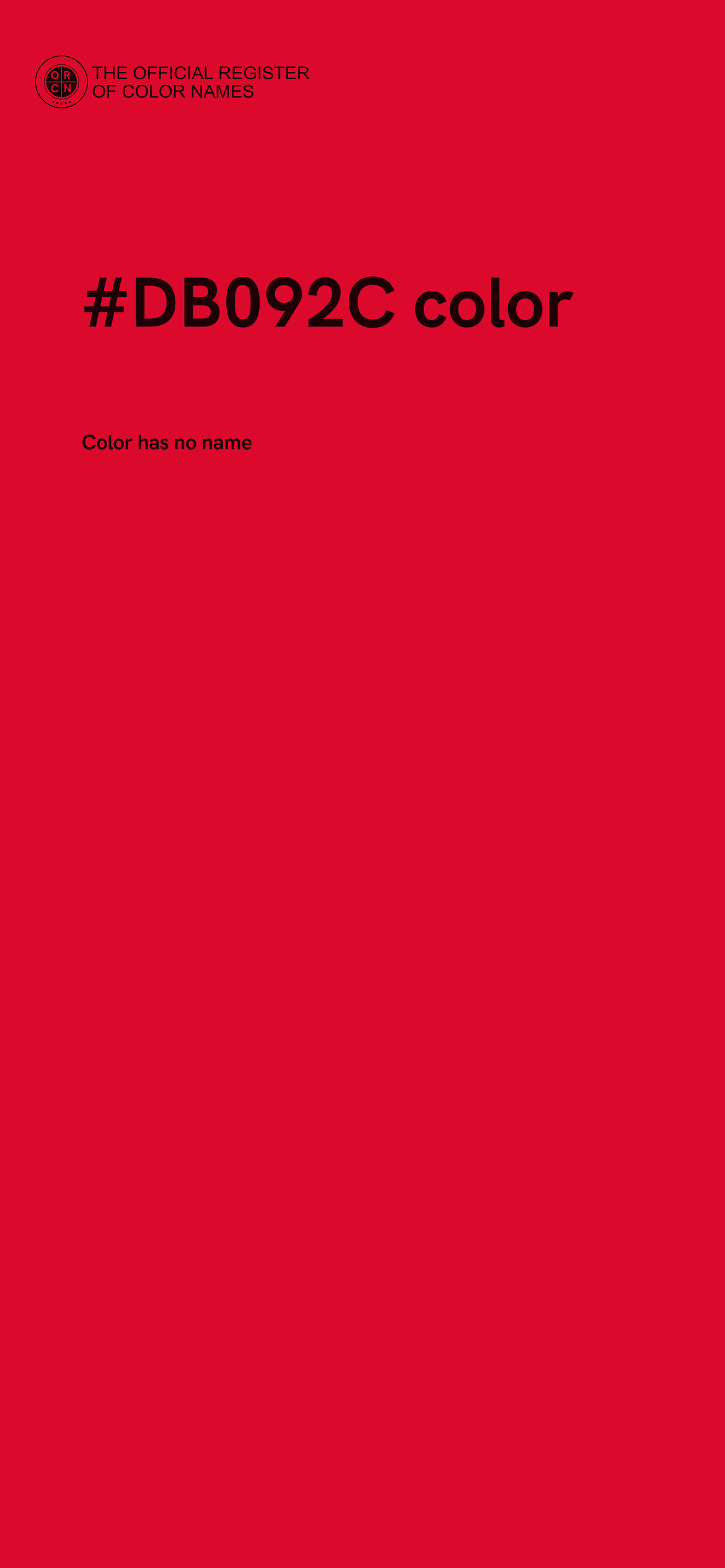 For printing in non digital world, #DB092C is represented in CMYK as 0 Cyan, 82 Magenta, 69 Yellow, and 14 Black (Key) (C:0 M:82 Y:69 K:14).