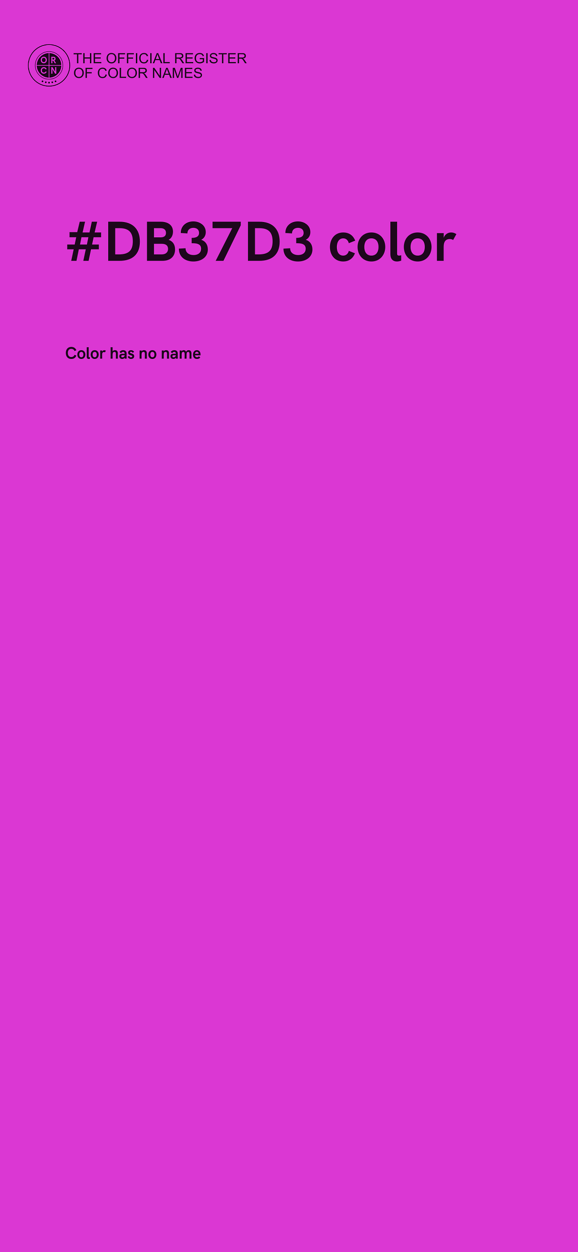 For printing in non digital world, #DB37D3 is represented in CMYK as 0 Cyan, 64 Magenta, 3 Yellow, and 14 Black (Key) (C:0 M:64 Y:3 K:14).