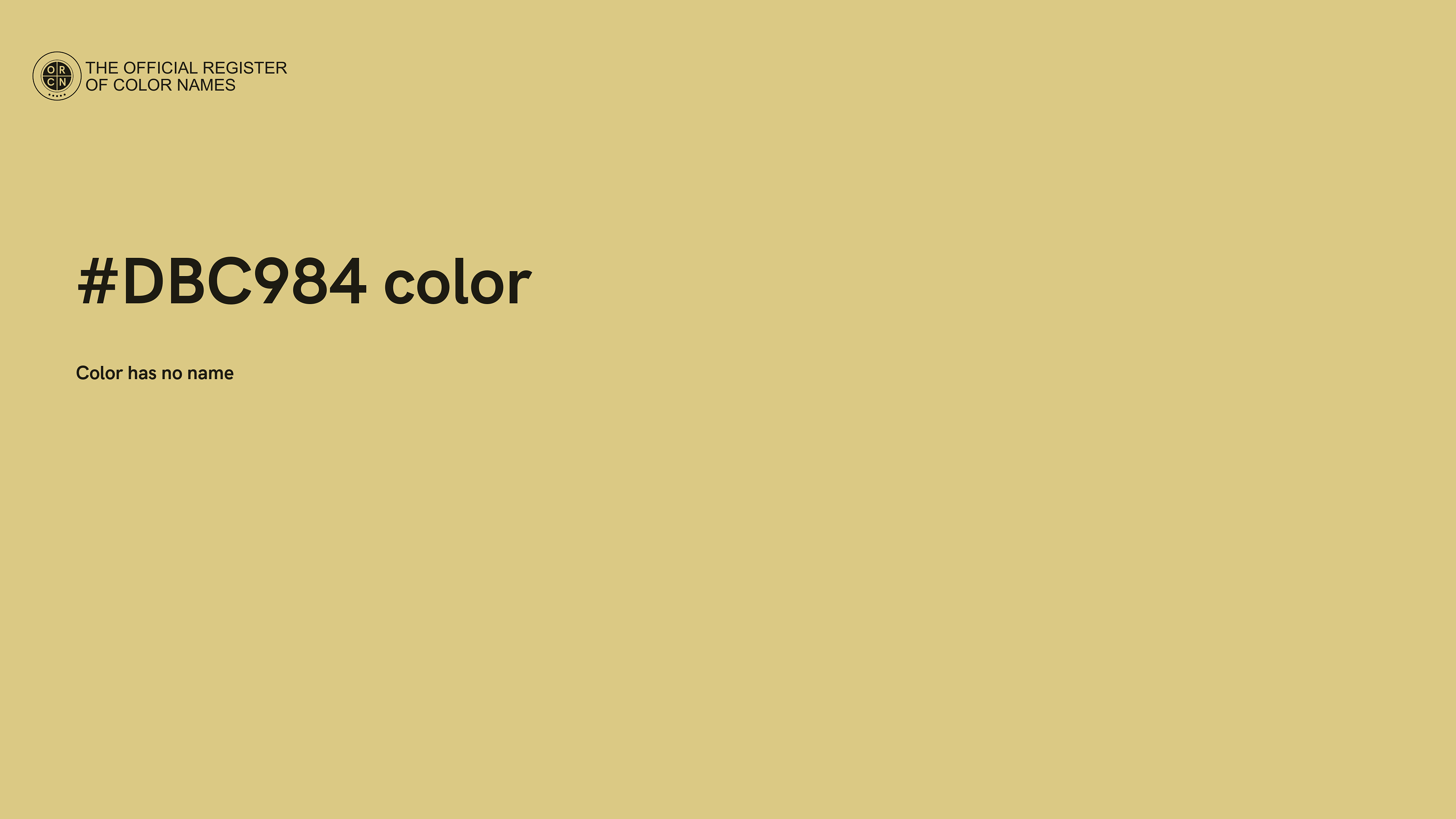 The digital color HEX #DBC984 belongs to the Yellow Color Family featuring Moderate Saturation (Saturation Family) and Very Light (Brightness Family).