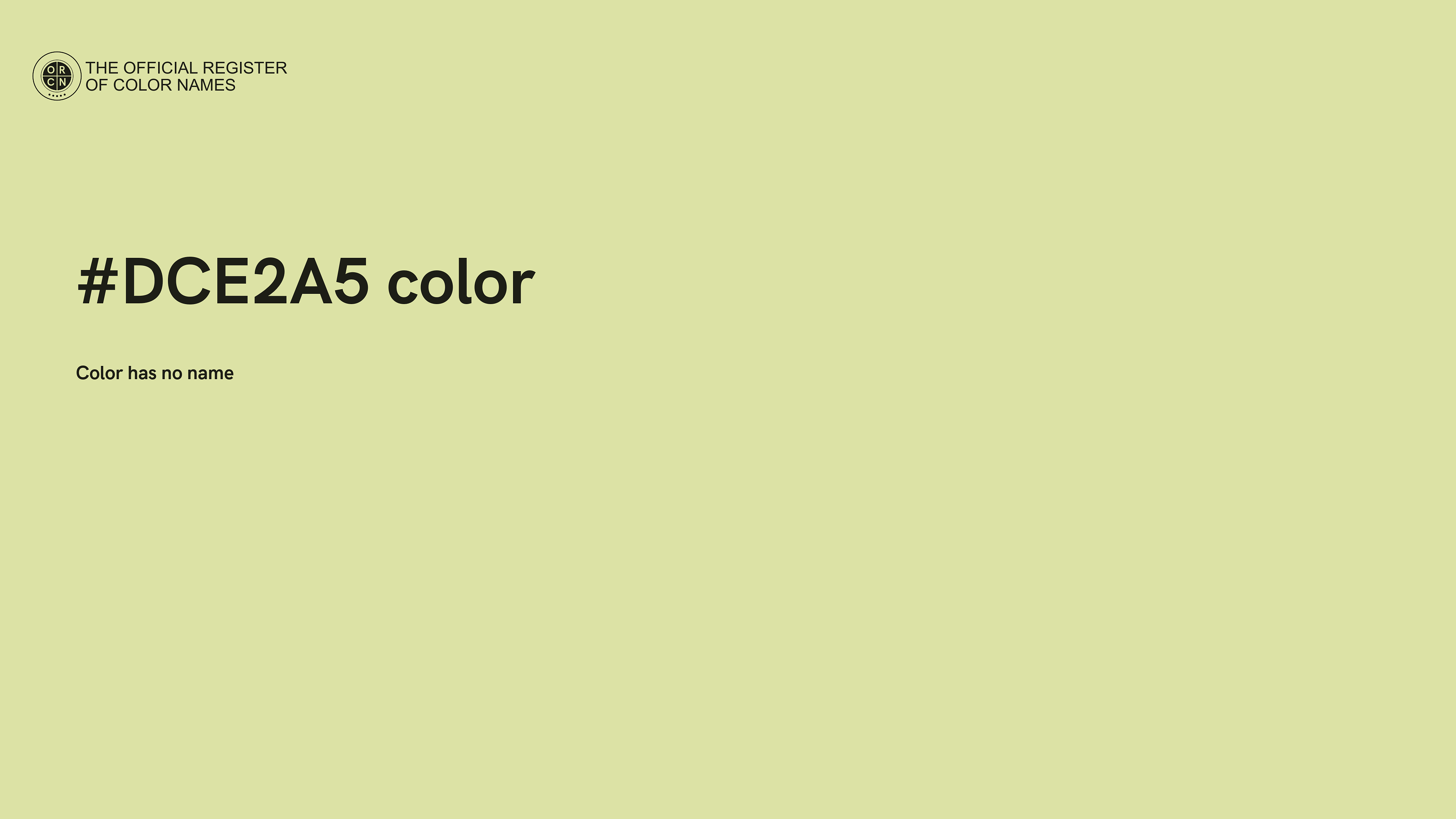 The digital color HEX #DCE2A5 belongs to the Yellow Color Family featuring Moderate Saturation (Saturation Family) and Very Light (Brightness Family).