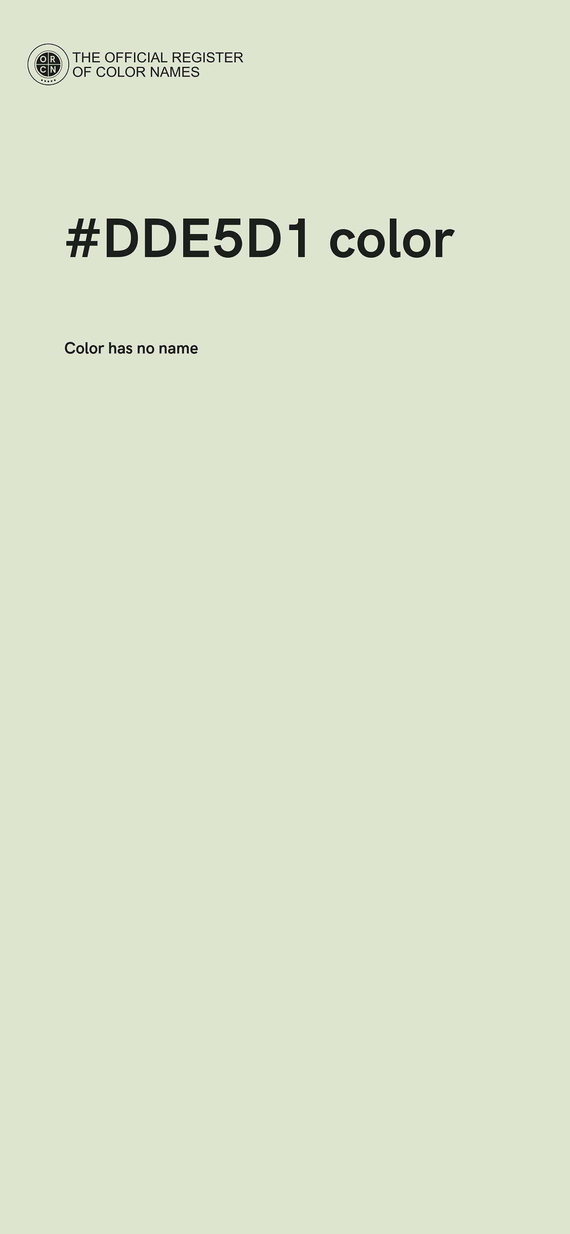 The digital color HEX #DDE5D1 belongs to the Chartreuse Color Family featuring Mild Saturation (Saturation Family) and Luminous (Brightness Family).