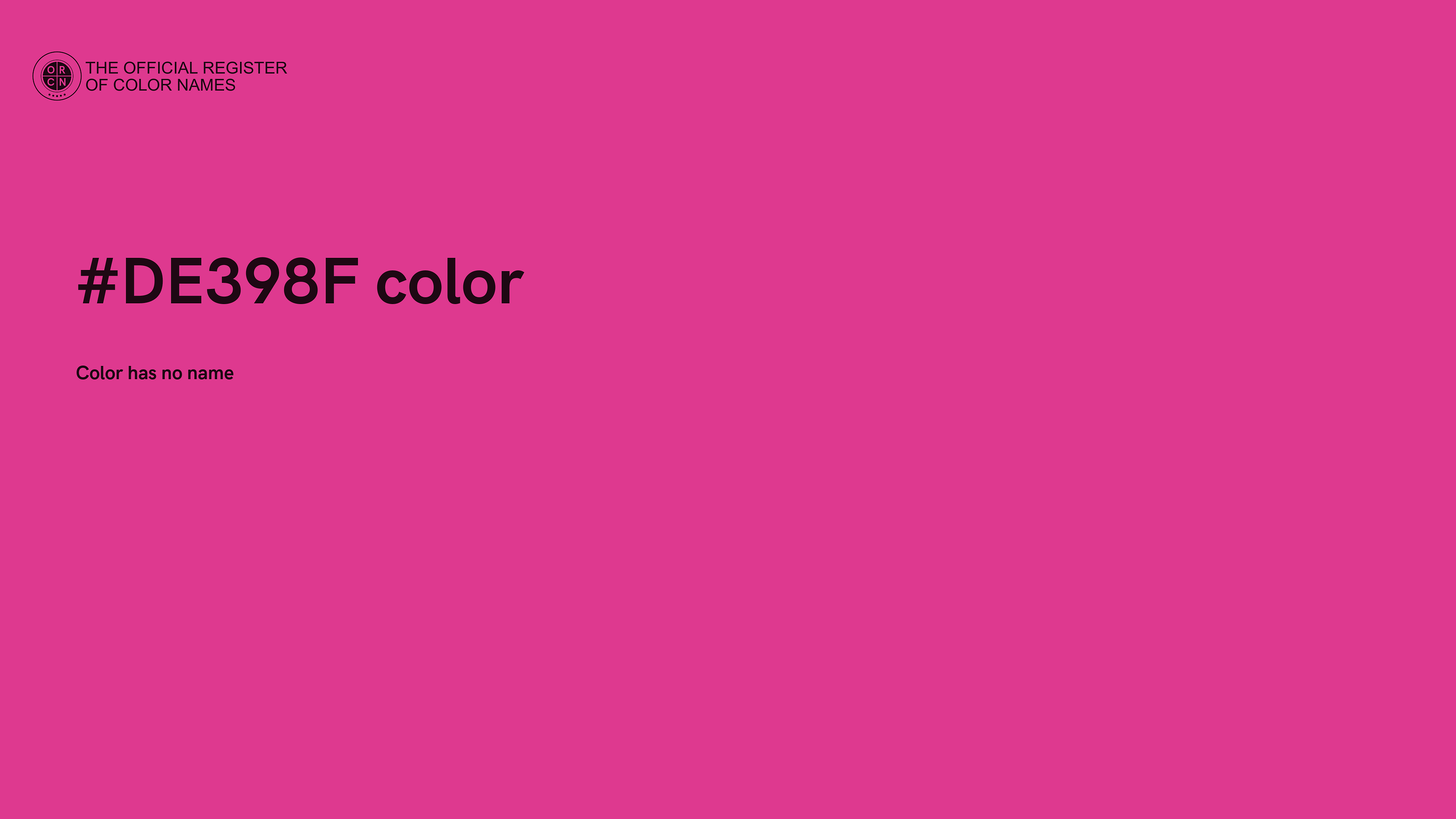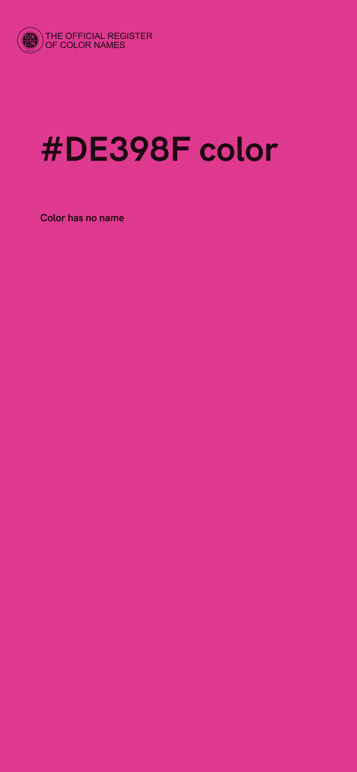 The digital color HEX #DE398F belongs to the Rose Color Family featuring High Saturation (Saturation Family) and Light (Brightness Family).