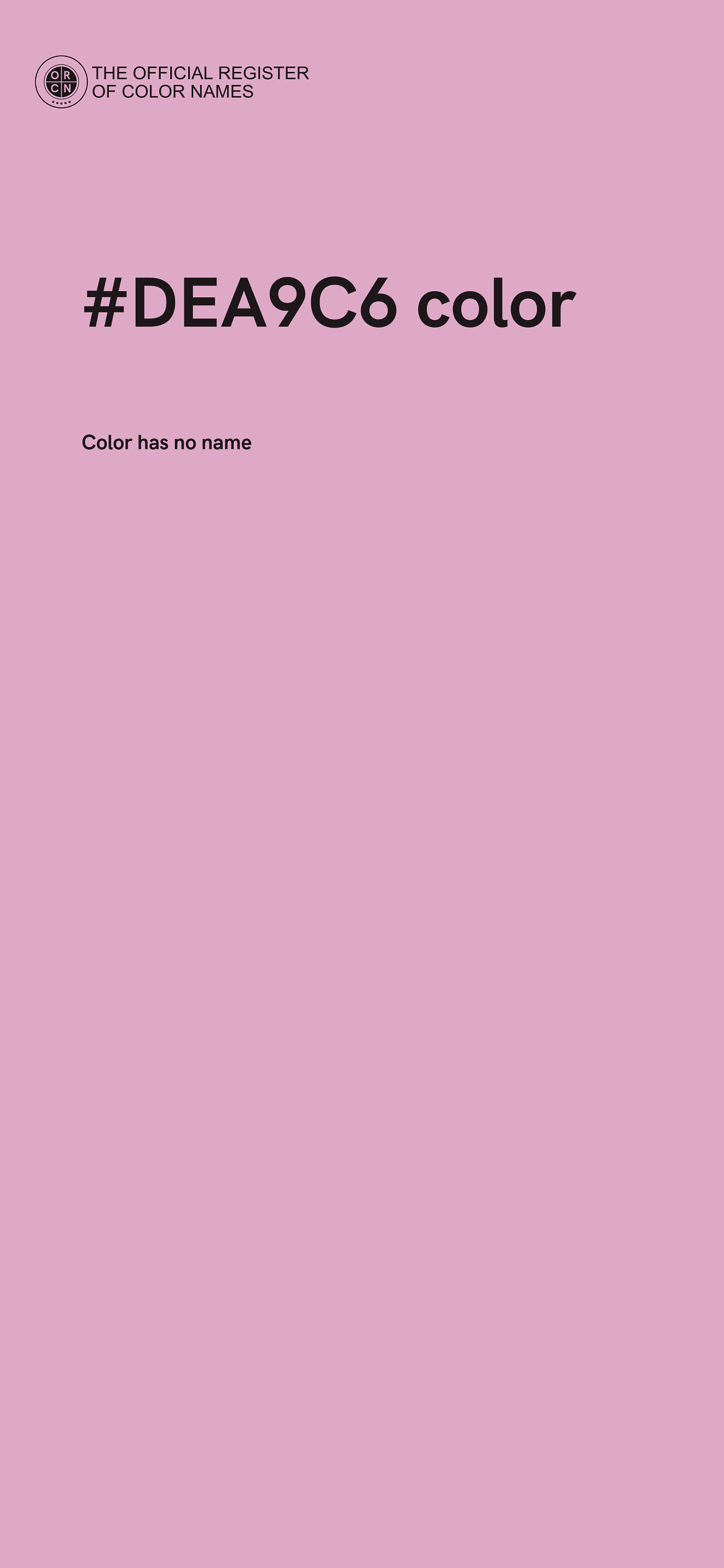 For printing in non digital world, #DEA9C6 is represented in CMYK as 0 Cyan, 21 Magenta, 9 Yellow, and 13 Black (Key) (C:0 M:21 Y:9 K:13).