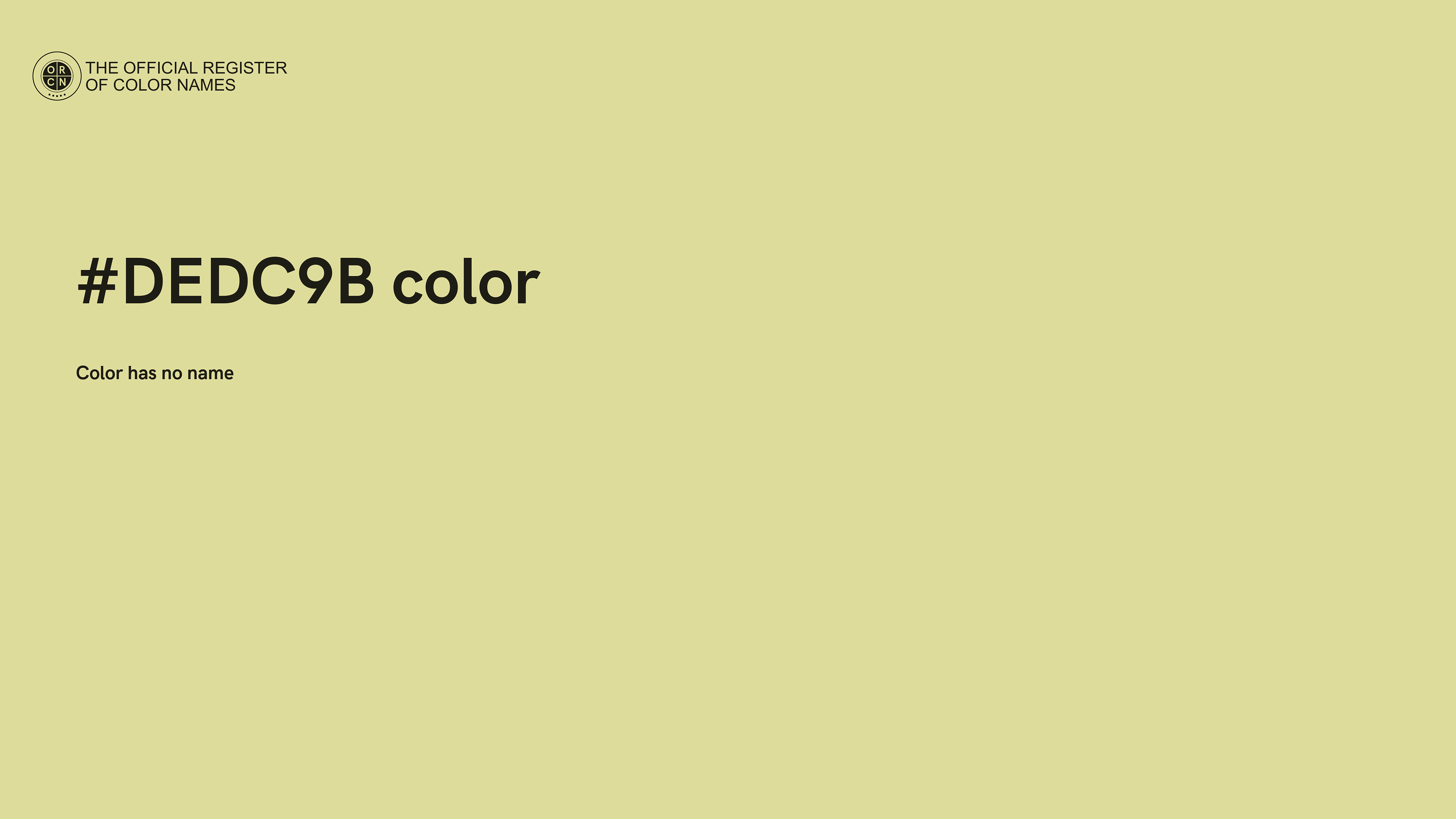 The digital color HEX #DEDC9B belongs to the Yellow Color Family featuring Moderate Saturation (Saturation Family) and Very Light (Brightness Family).