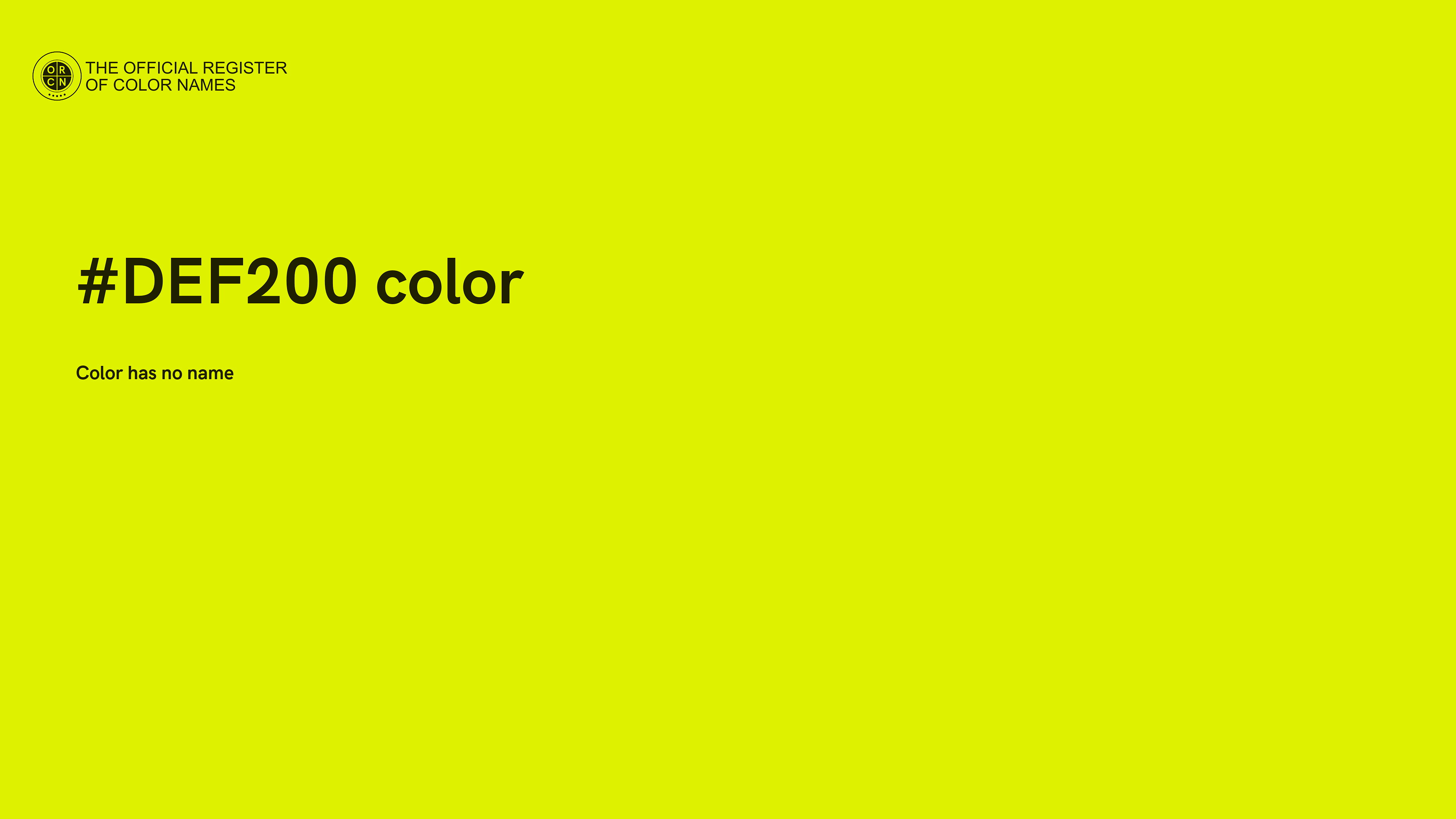 For printing in non digital world, #DEF200 is represented in CMYK as 8 Cyan, 0 Magenta, 95 Yellow, and 5 Black (Key) (C:8 M:0 Y:95 K:5).