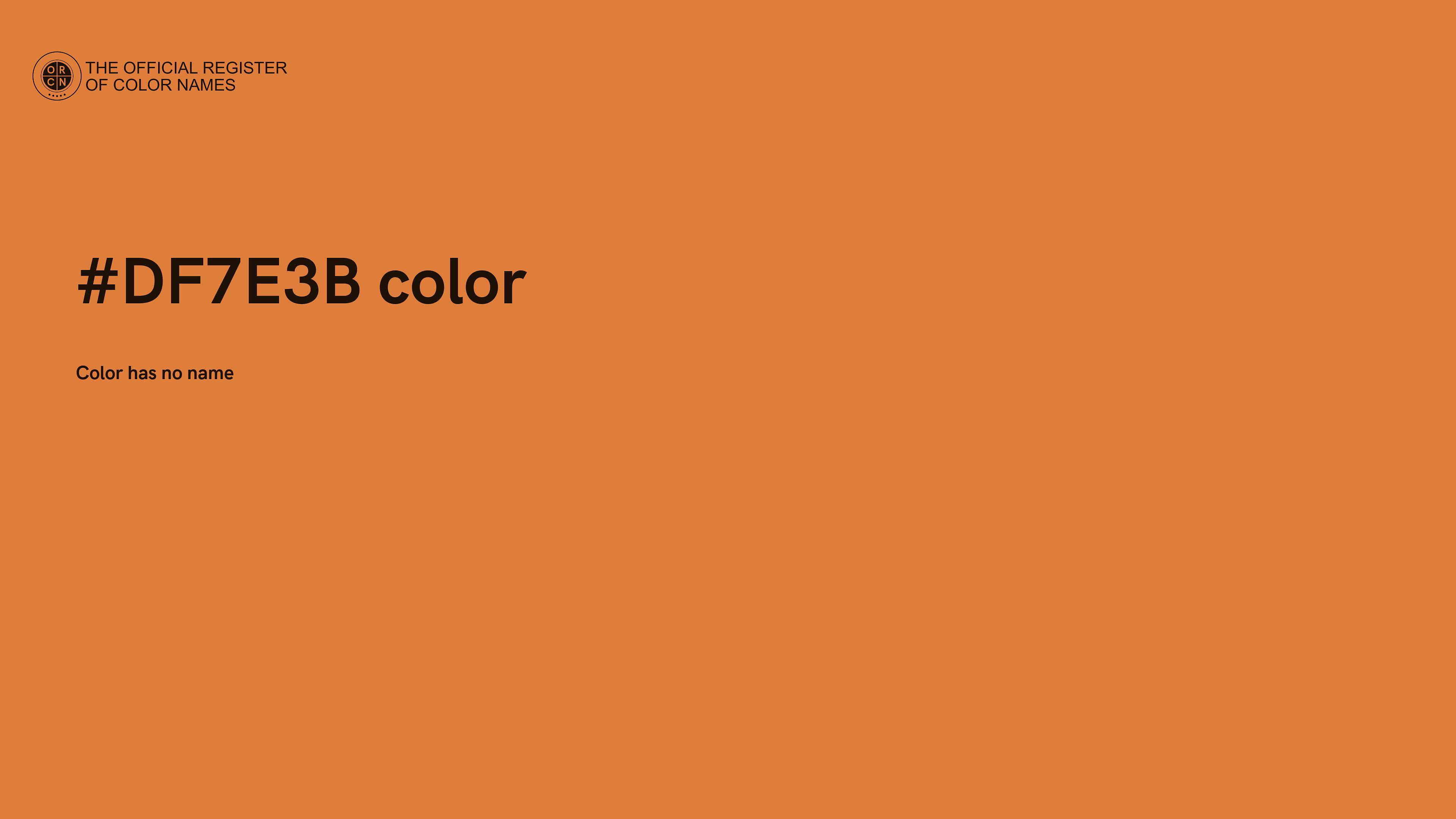 The digital color HEX #DF7E3B belongs to the Orange Color Family featuring High Saturation (Saturation Family) and Light (Brightness Family).