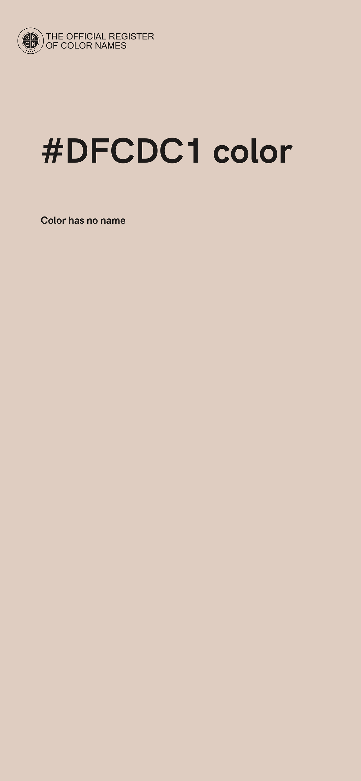 The digital color HEX #DFCDC1 belongs to the Orange Color Family featuring Mild Saturation (Saturation Family) and Very Light (Brightness Family).