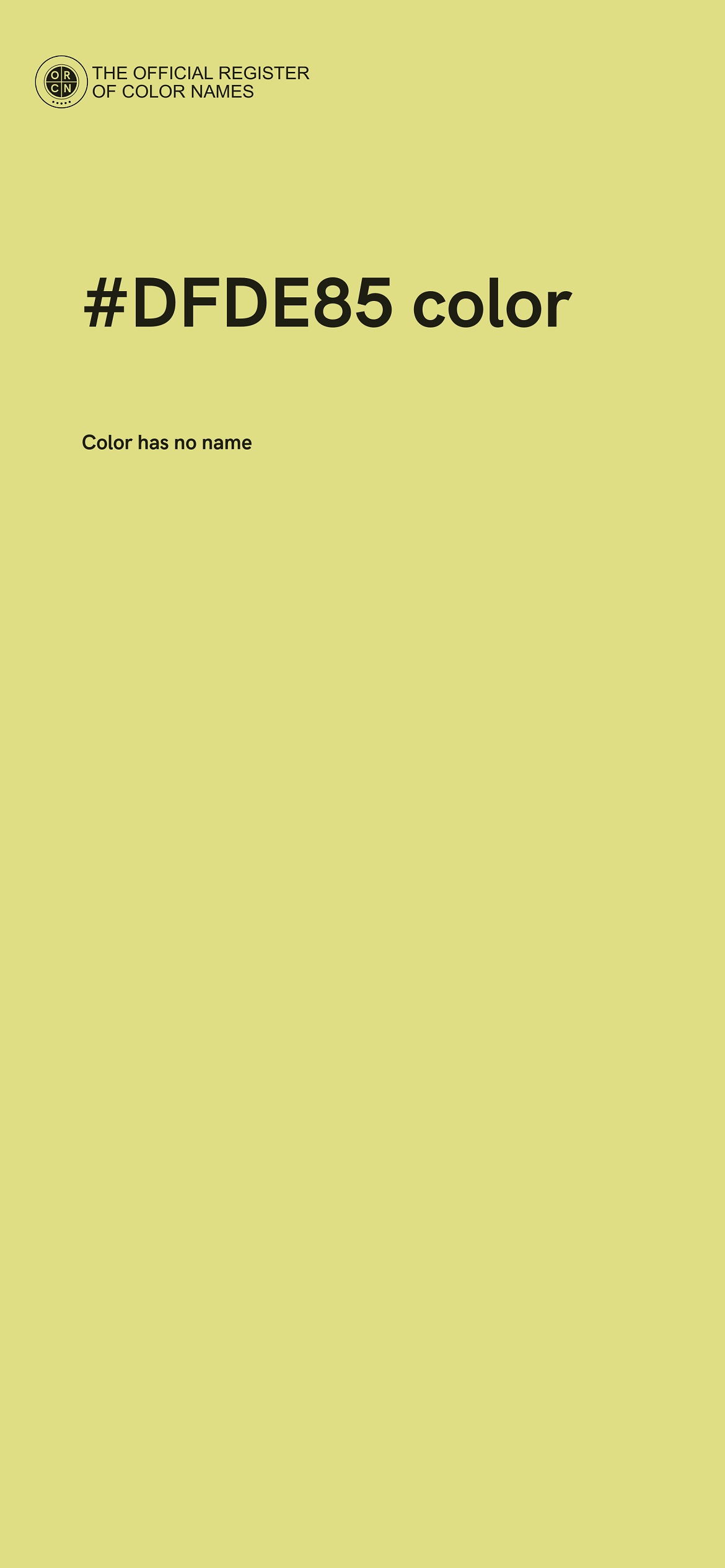 For printing in non digital world, #DFDE85 is represented in CMYK as 0 Cyan, 0 Magenta, 35 Yellow, and 13 Black (Key) (C:0 M:0 Y:35 K:13).