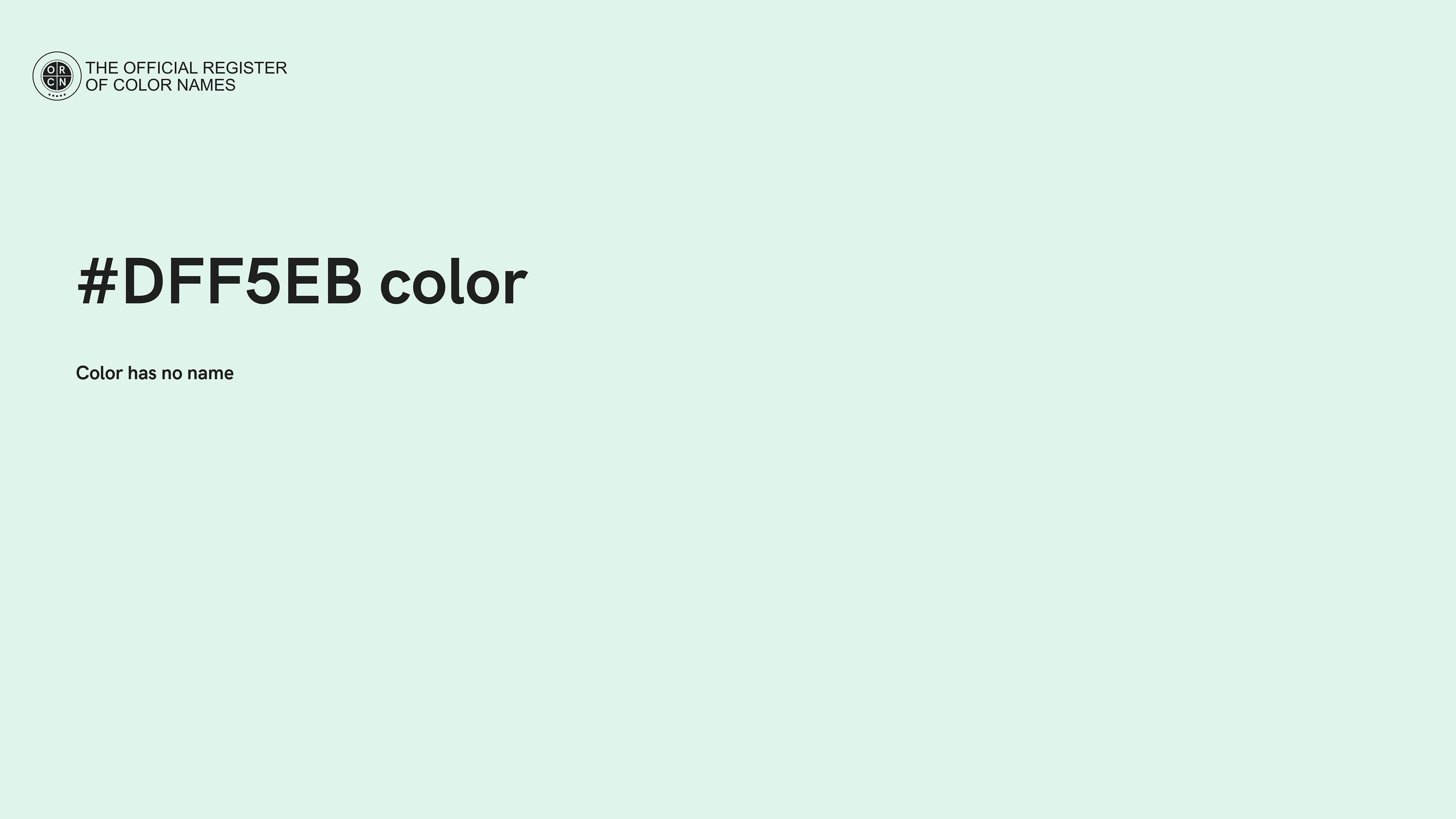 The digital color HEX #DFF5EB belongs to the Spring Green Color Family featuring Moderate Saturation (Saturation Family) and Luminous (Brightness Family).