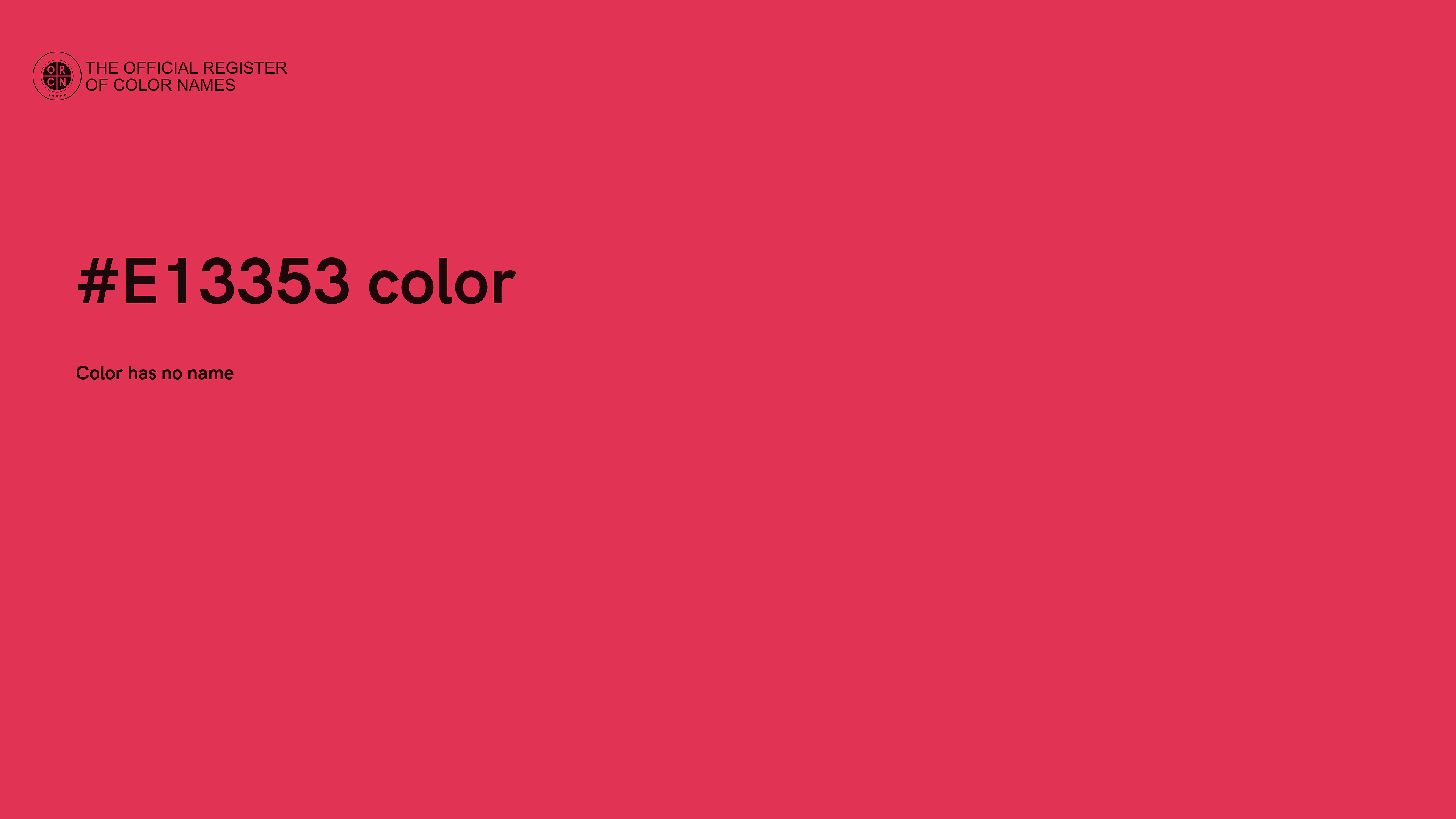 For printing in non digital world, #E13353 is represented in CMYK as 0 Cyan, 68 Magenta, 56 Yellow, and 12 Black (Key) (C:0 M:68 Y:56 K:12).