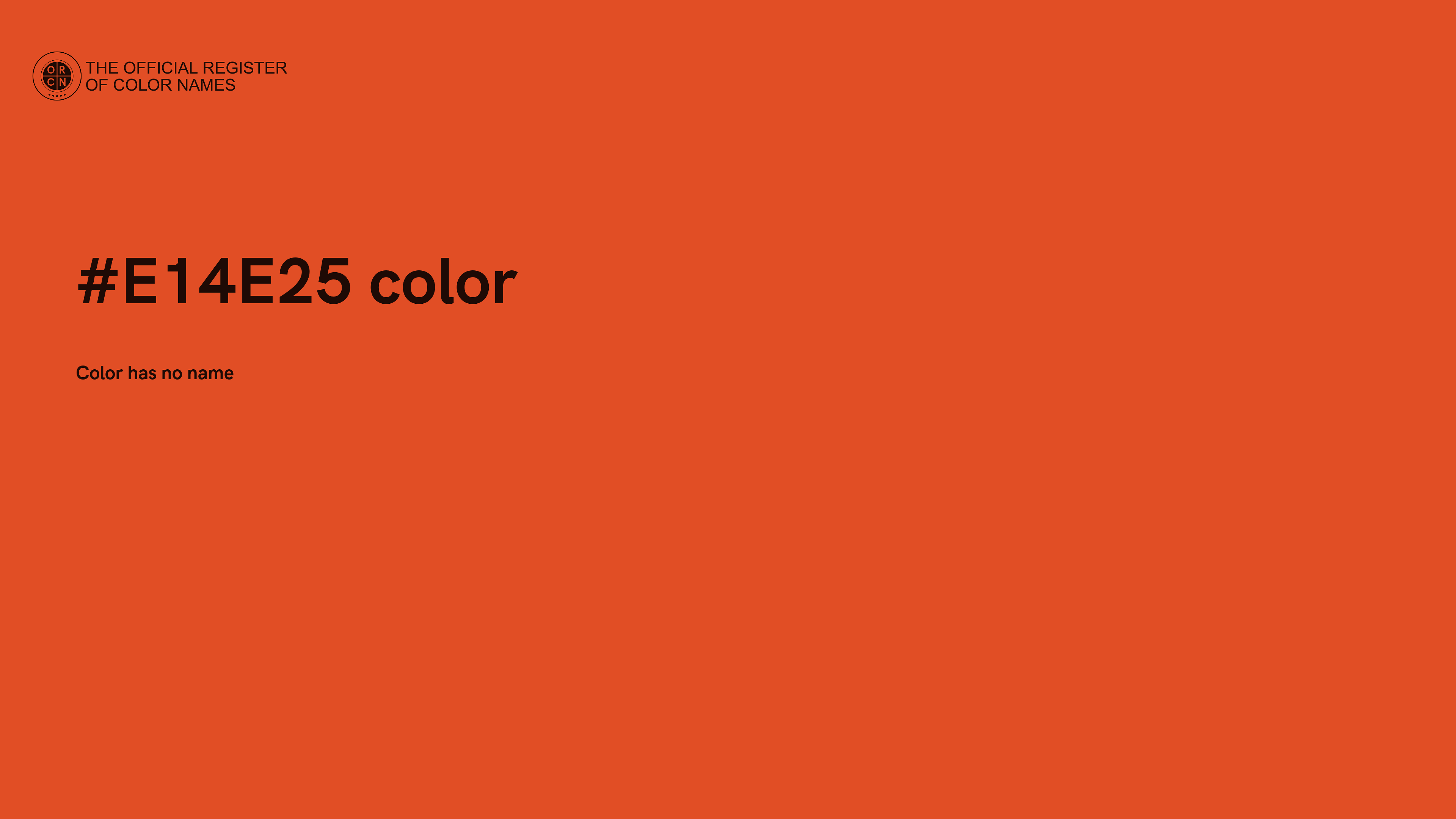 The digital color HEX #E14E25 belongs to the Red Color Family featuring High Saturation (Saturation Family) and Light (Brightness Family).