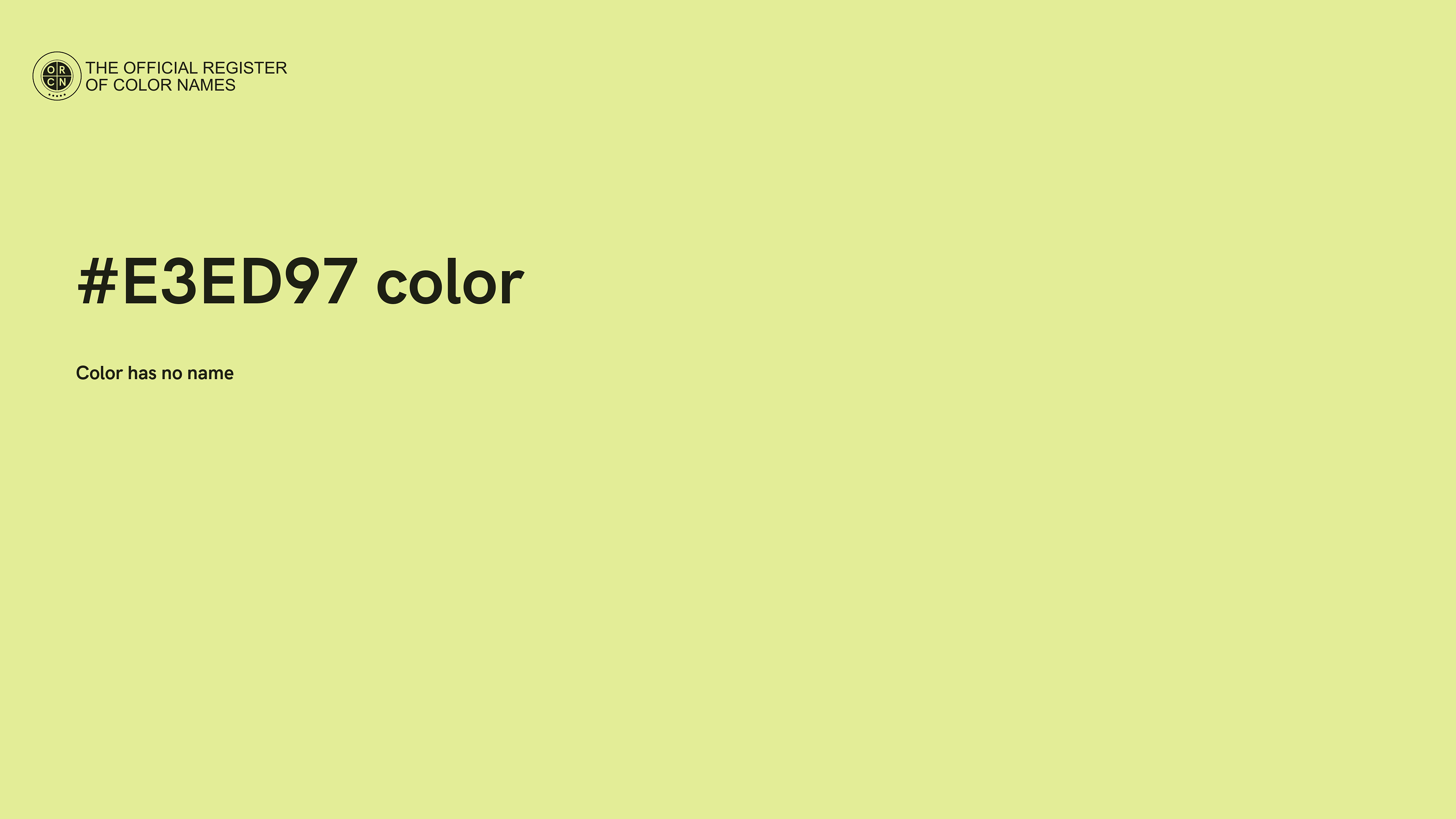 For printing in non digital world, #E3ED97 is represented in CMYK as 4 Cyan, 0 Magenta, 34 Yellow, and 7 Black (Key) (C:4 M:0 Y:34 K:7).