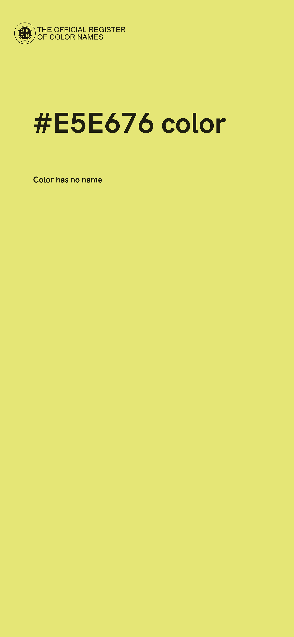 The digital color HEX #E5E676 belongs to the Yellow Color Family featuring High Saturation (Saturation Family) and Very Light (Brightness Family).