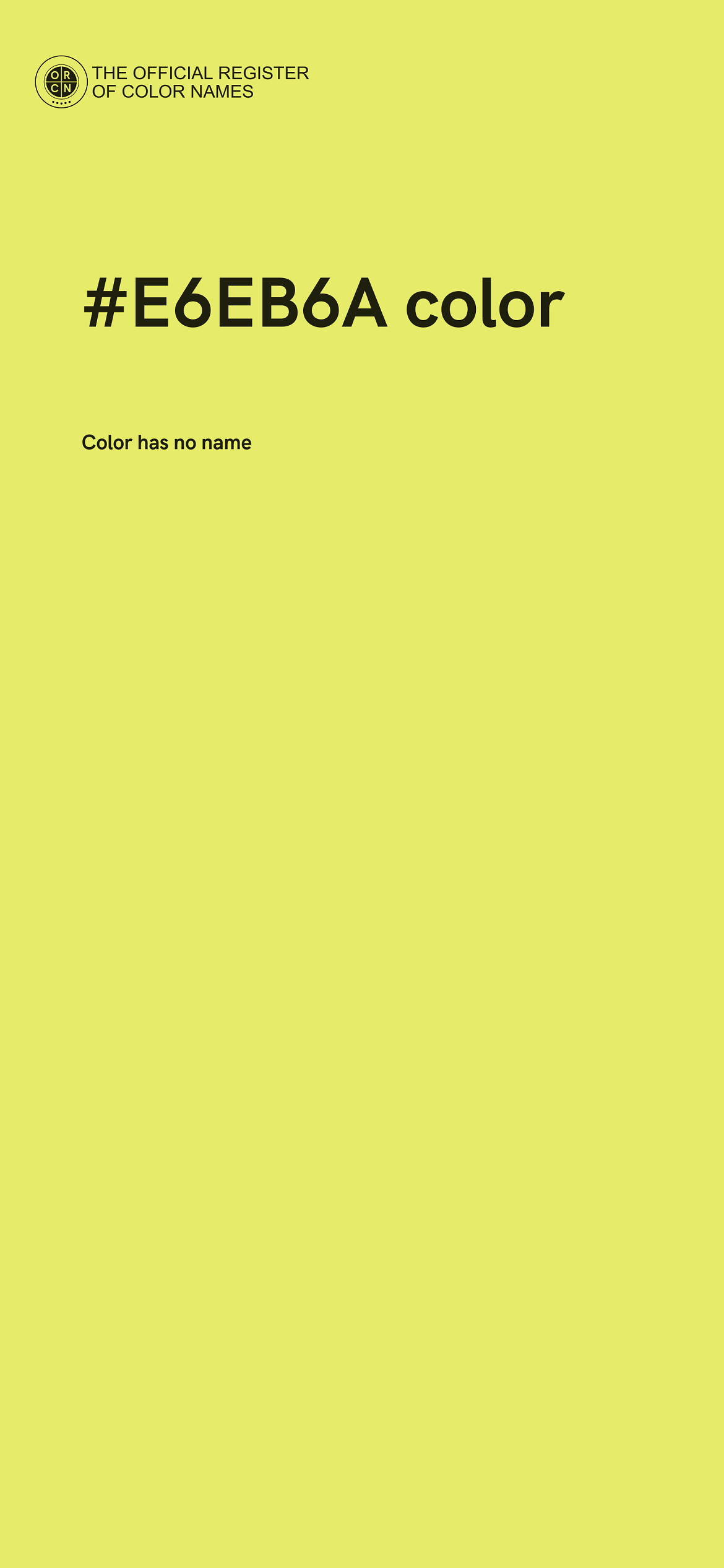 The digital color HEX #E6EB6A belongs to the Yellow Color Family featuring High Saturation (Saturation Family) and Very Light (Brightness Family).