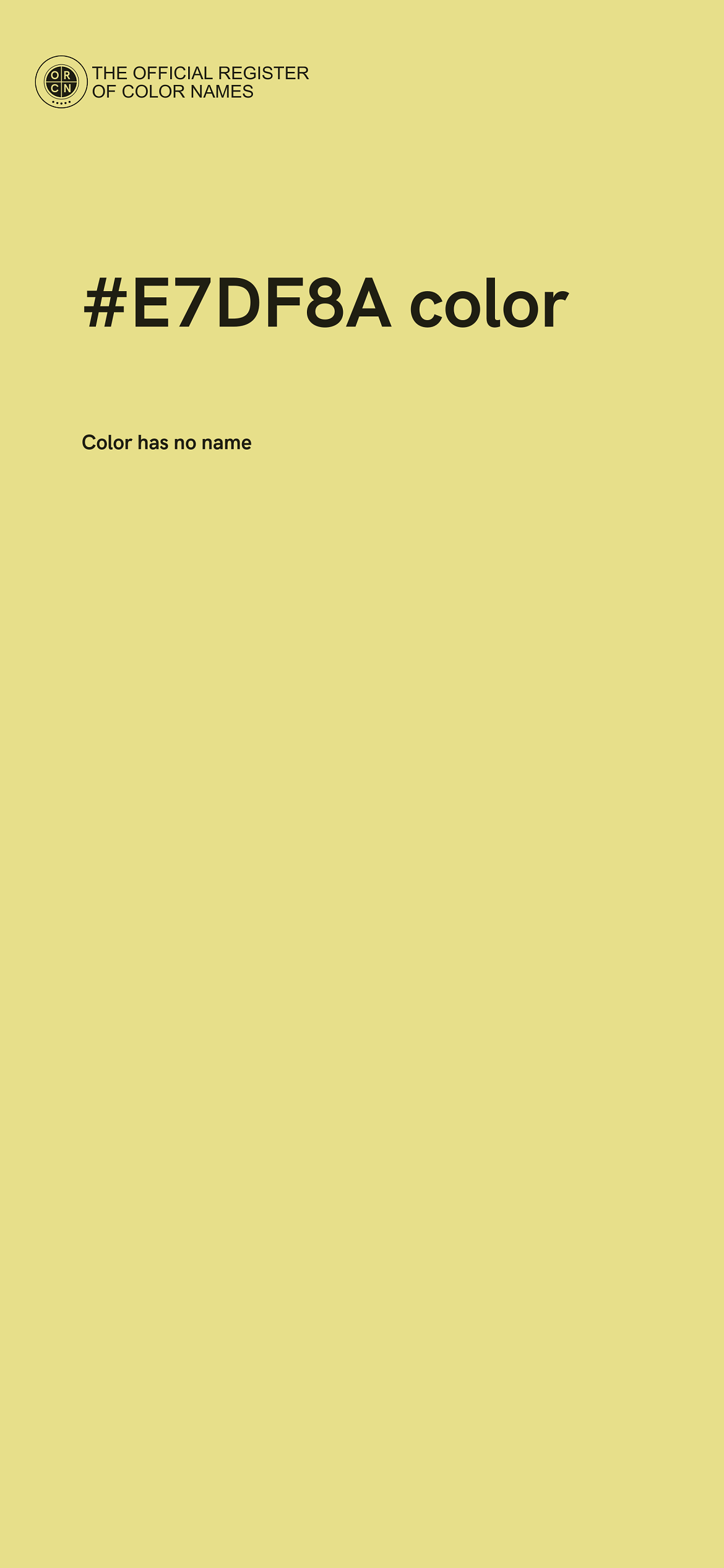 For printing in non digital world, #E7DF8A is represented in CMYK as 0 Cyan, 3 Magenta, 36 Yellow, and 9 Black (Key) (C:0 M:3 Y:36 K:9).