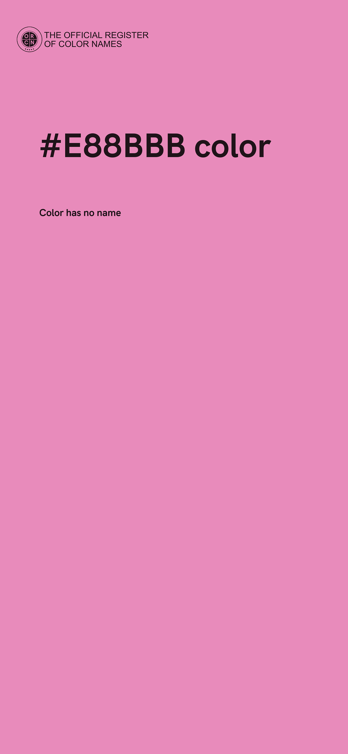 The digital color HEX #E88BBB belongs to the Rose Color Family featuring High Saturation (Saturation Family) and Very Light (Brightness Family).