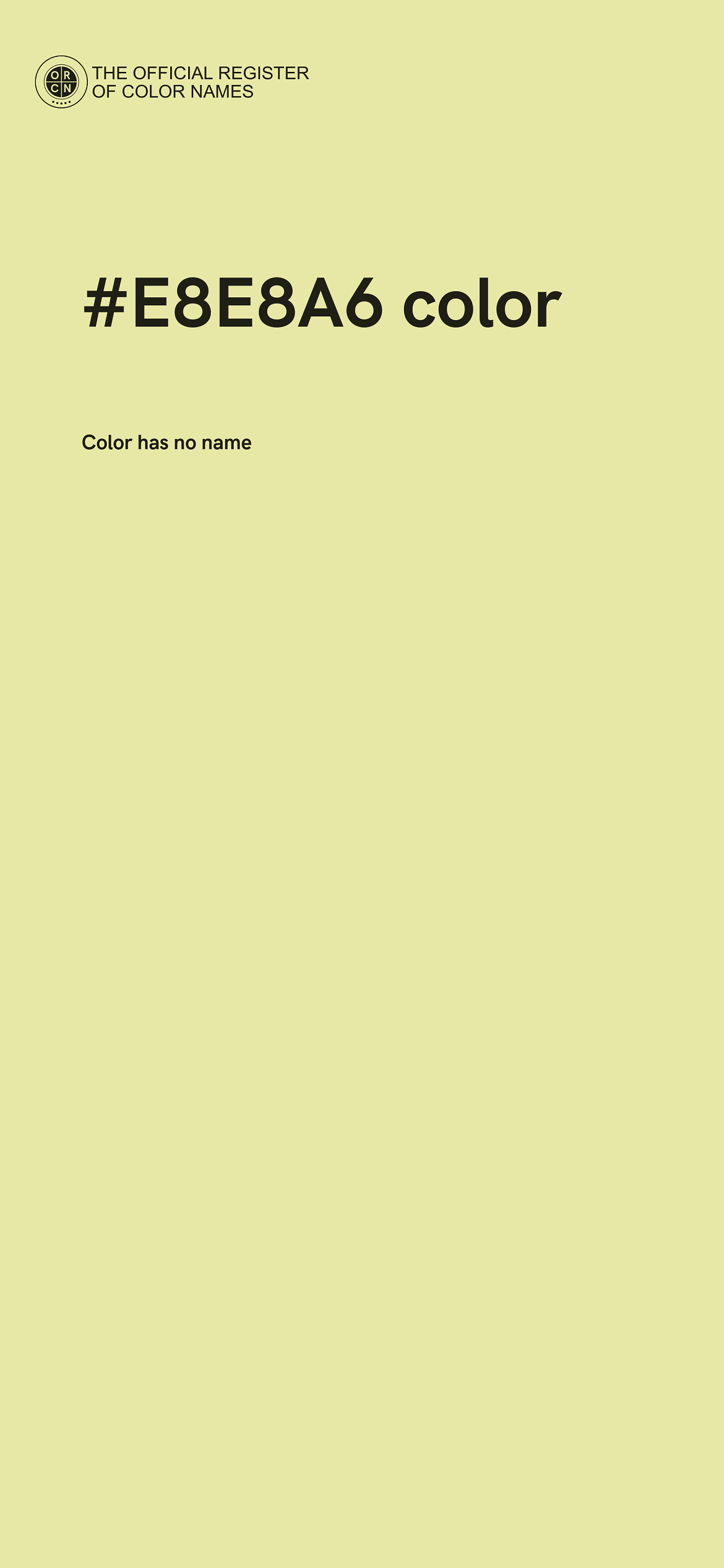 For printing in non digital world, #E8E8A6 is represented in CMYK as 0 Cyan, 0 Magenta, 26 Yellow, and 9 Black (Key) (C:0 M:0 Y:26 K:9).