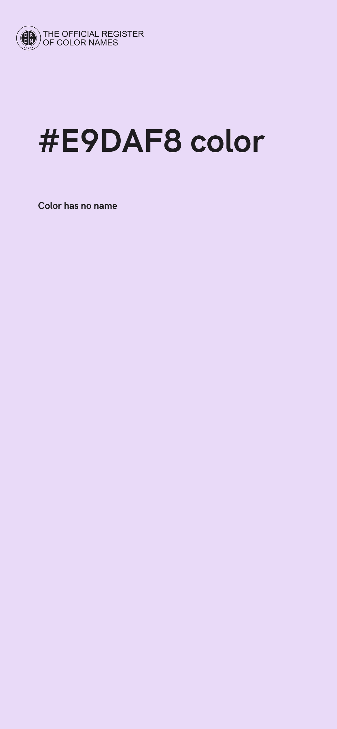 The digital color HEX #E9DAF8 belongs to the Violet Color Family featuring High Saturation (Saturation Family) and Luminous (Brightness Family).