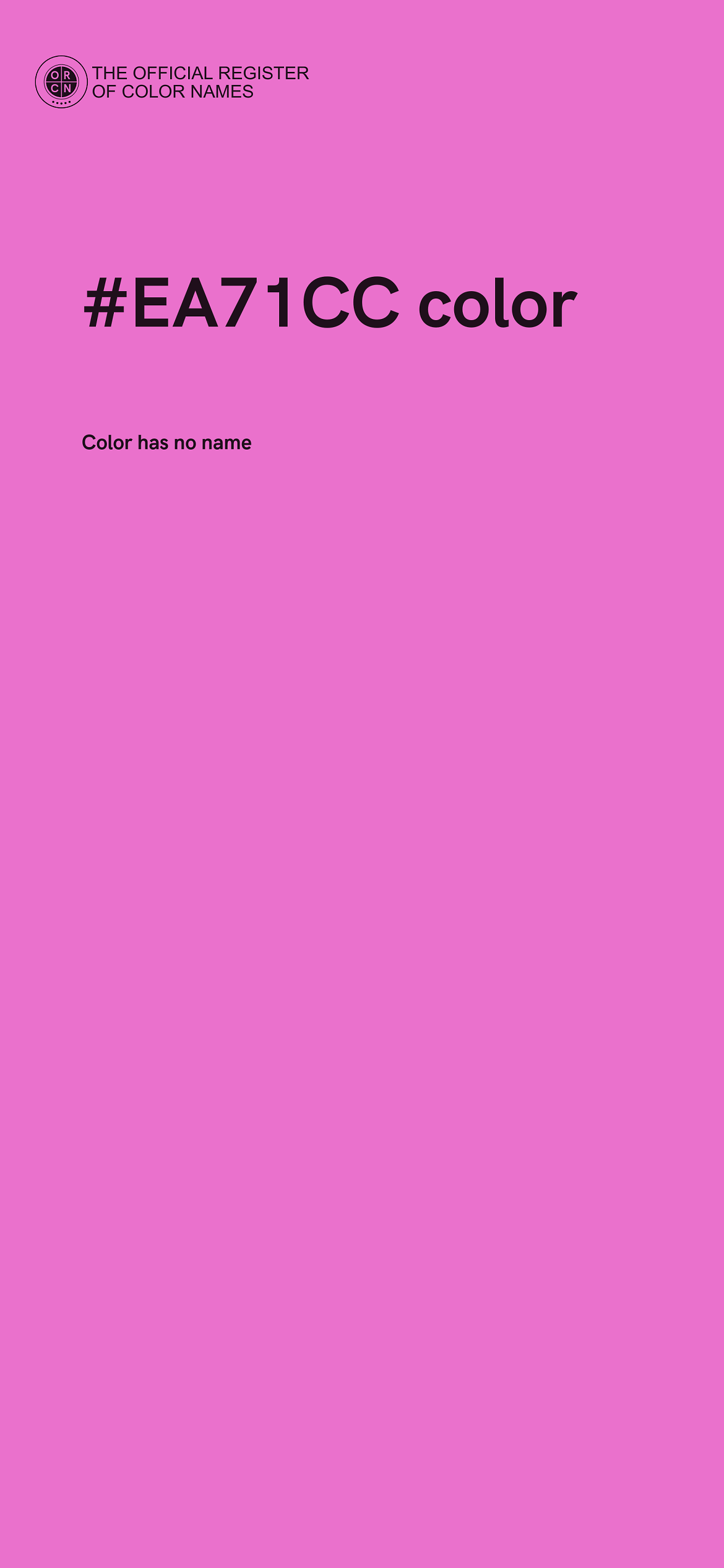 The digital color HEX #EA71CC belongs to the Rose Color Family featuring High Saturation (Saturation Family) and Very Light (Brightness Family).