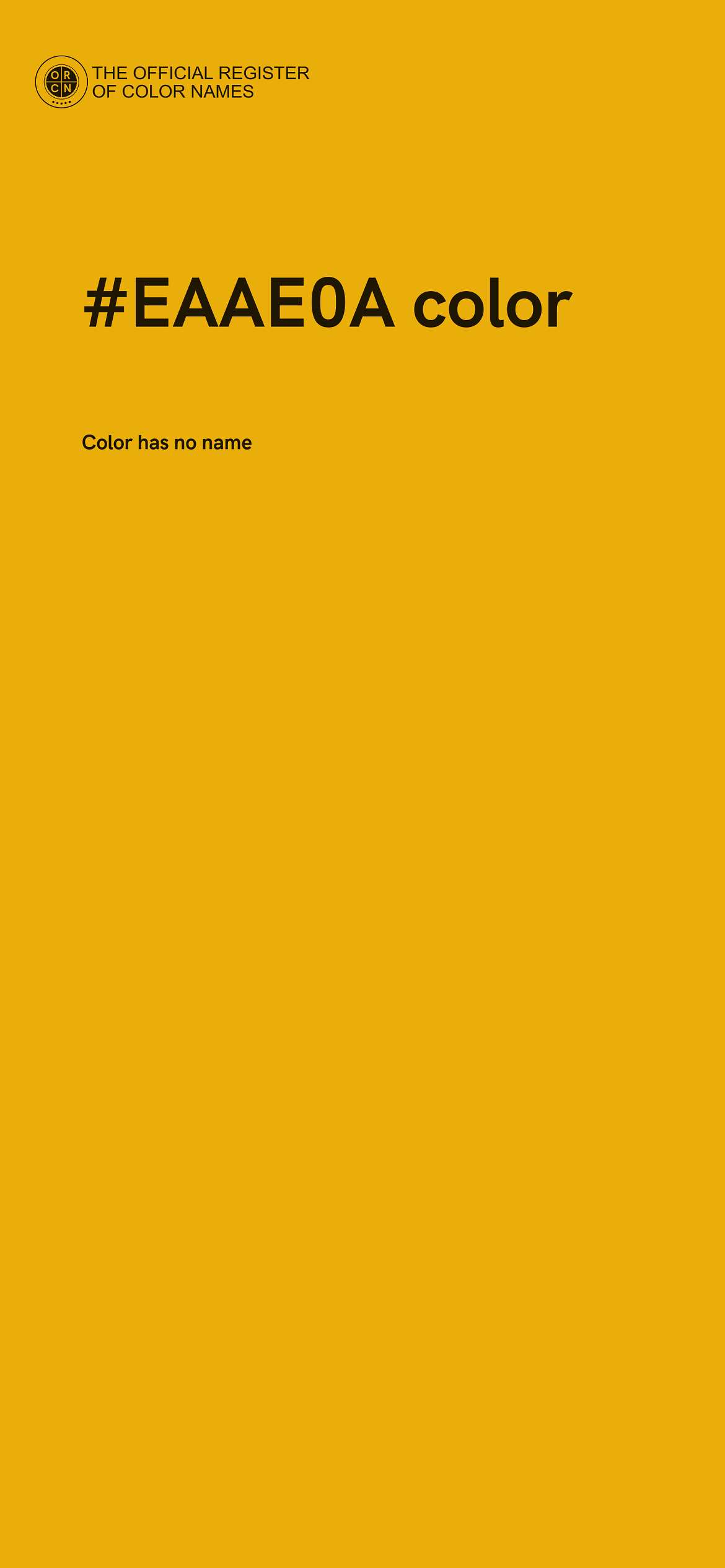 The digital color HEX #EAAE0A belongs to the Orange Color Family featuring Full Saturation (Saturation Family) and Light (Brightness Family).
