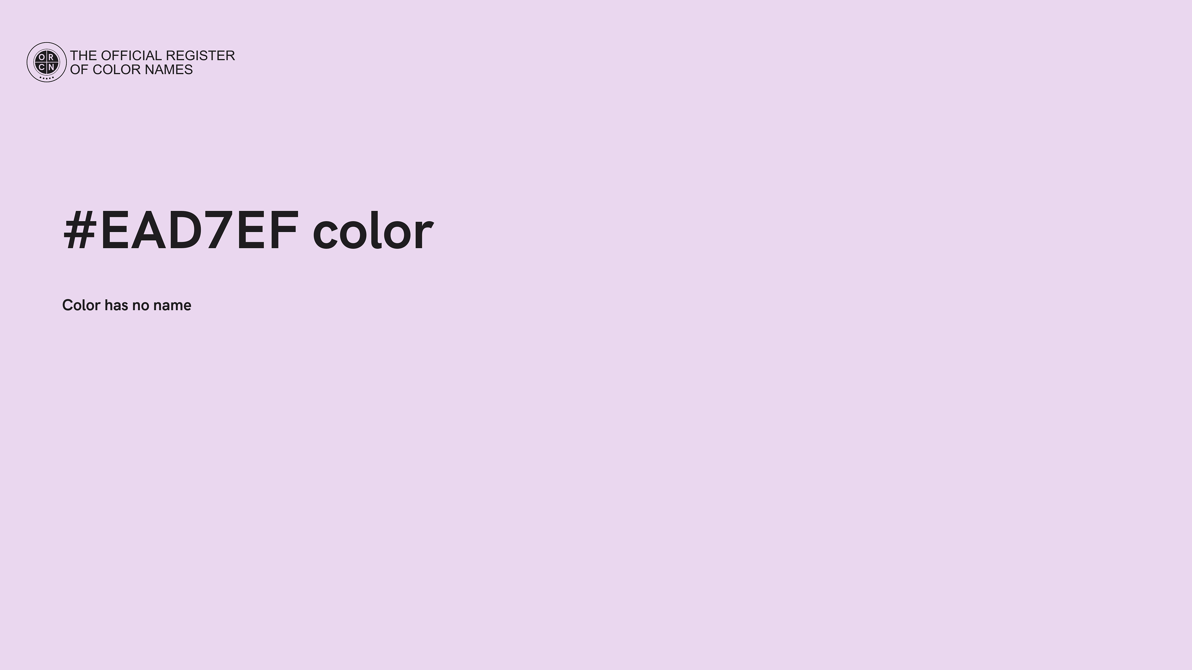 The digital color HEX #EAD7EF belongs to the Magenta Color Family featuring Moderate Saturation (Saturation Family) and Luminous (Brightness Family).