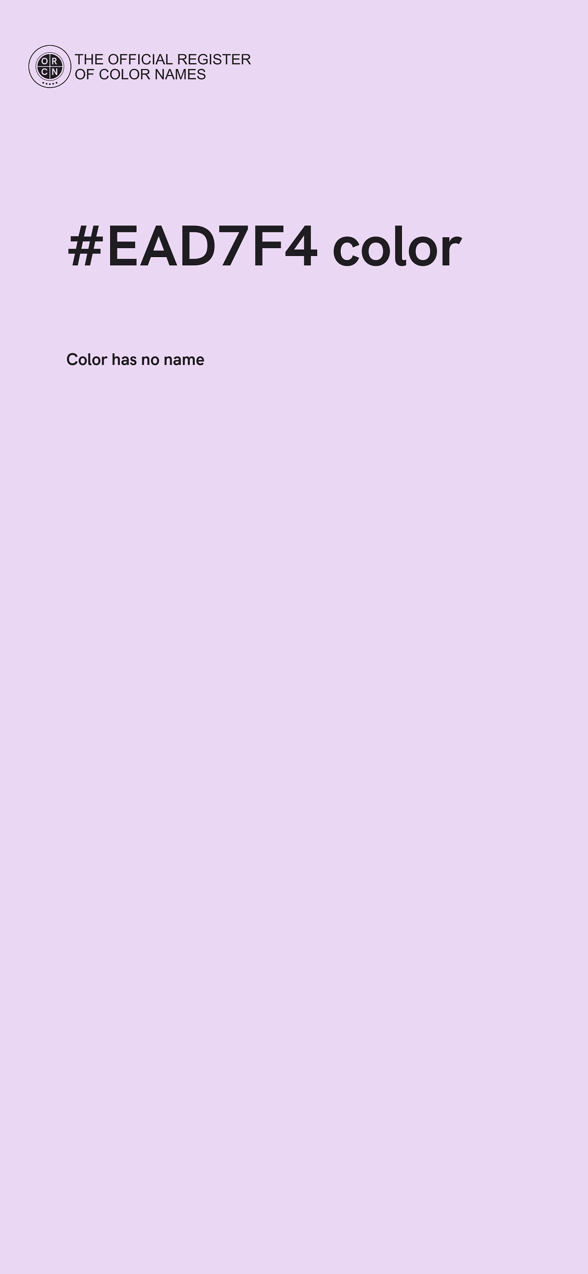 The digital color HEX #EAD7F4 belongs to the Violet Color Family featuring Moderate Saturation (Saturation Family) and Luminous (Brightness Family).